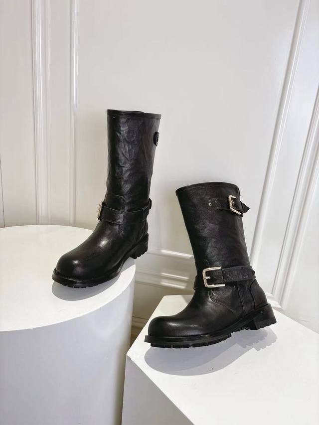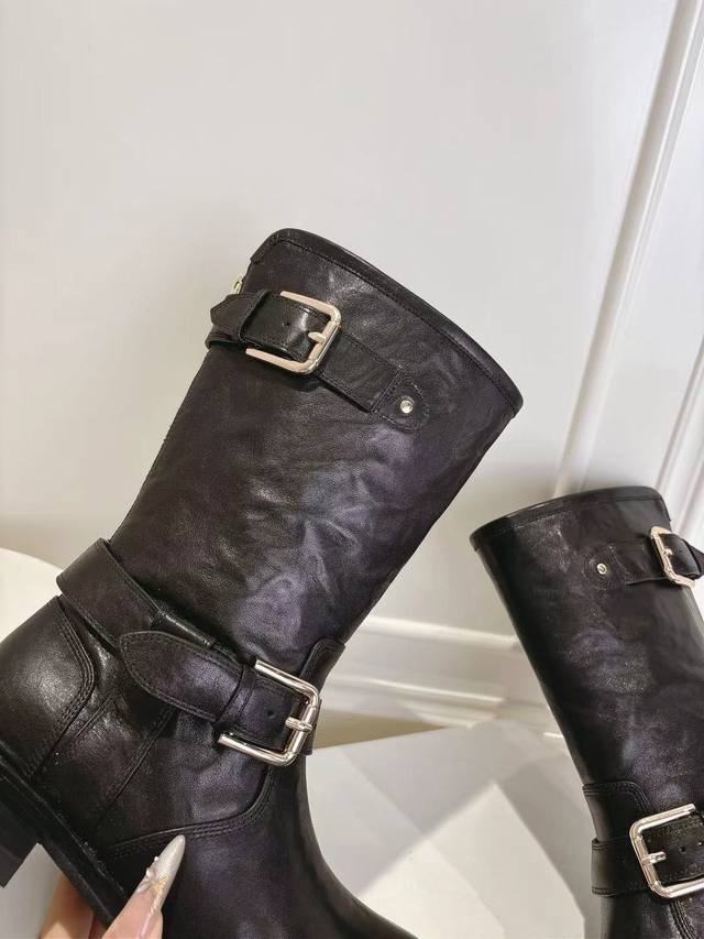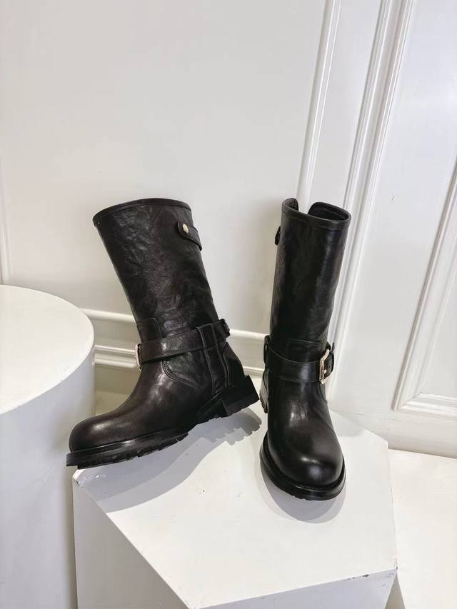 Dg10-inch round toe new boots, sizes 35-42, top-grain hand-scraped cowhide leather upper, cowhide lining, insole, 3.5cm heel height.