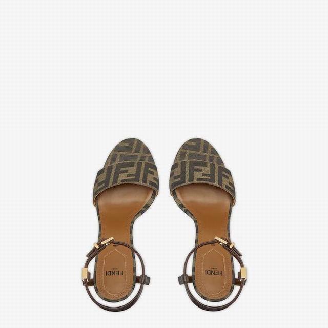 Delfina Metal Strappy Heels. The sleek lace-up closure is streamlined, while the leather and custom fabric add a stylish touch. The soft, delicate metal strap at the ankle and the heel are embellished with cutout details and a gold-tone metal Ff pattern. The clean, sleek upper is paired with a shimmering, metallic block heel for comfort, style, and ease.