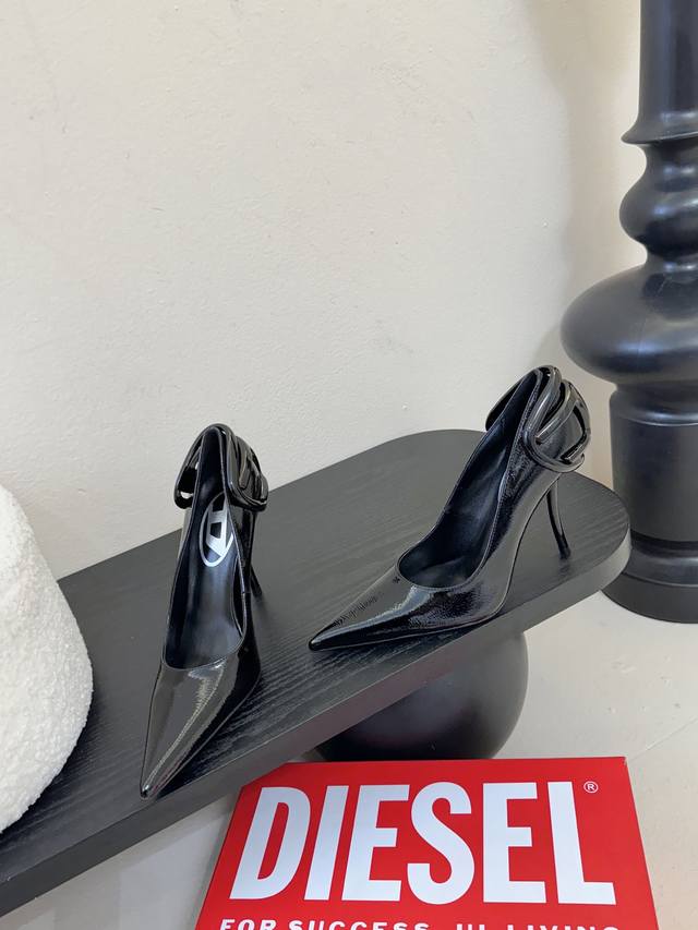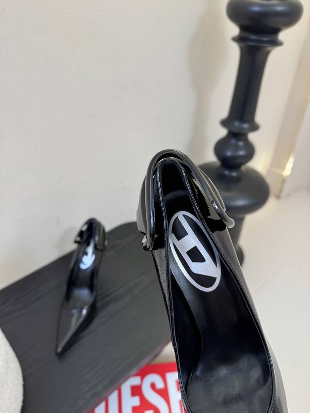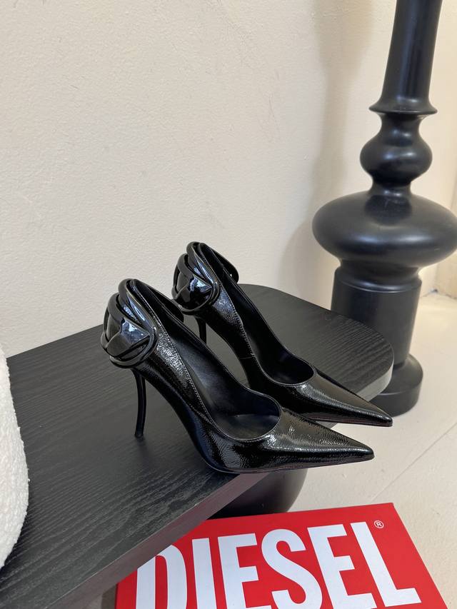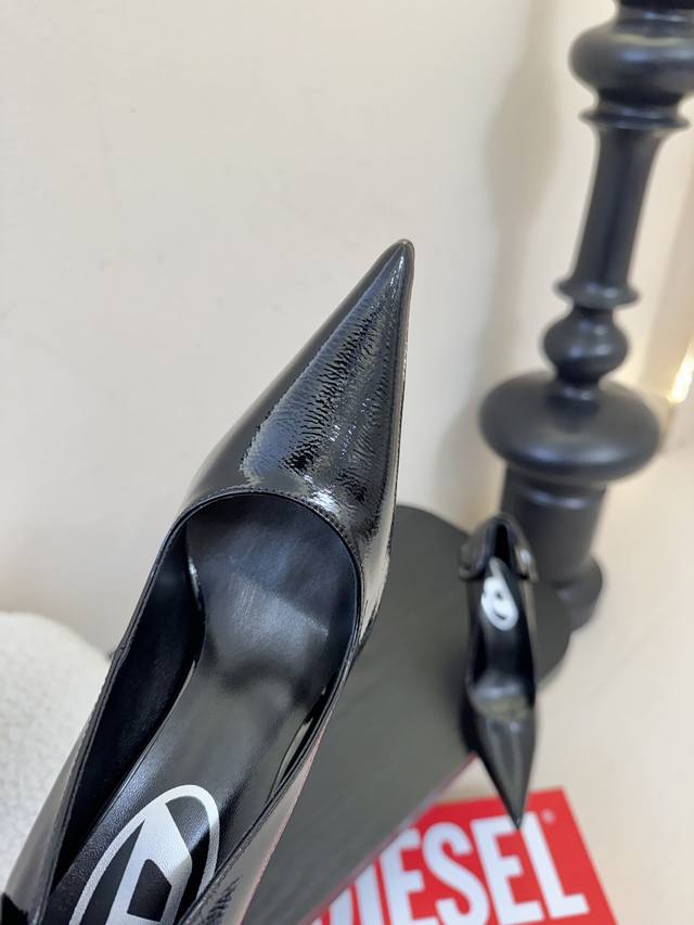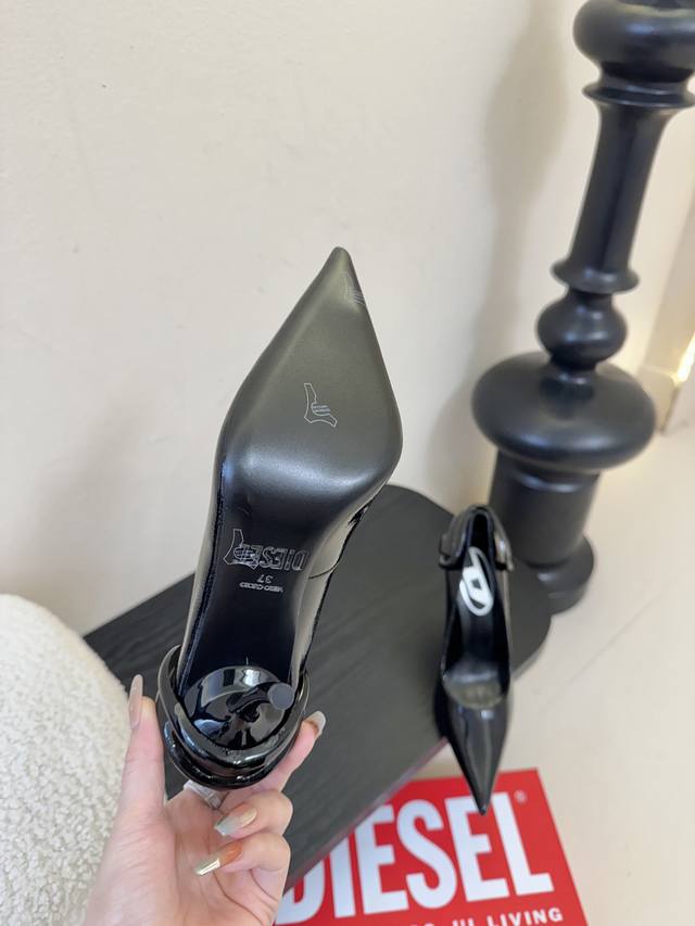 Diesel is hard not to love, it's so beautiful I can't take my eyes off it! Fashion radar is going crazy! This wave of Diesel high heels is practically welding "high-class sexiness" onto your feet. Whoever wears them will be a goddess! Futuristic metallic three-dimensional hardware, extremely fashionable, classic two-tone combination, perfectly capturing the "cool girl" vibe! Original purchase, custom mold metal hardware, superb replica! Upper: Imported super glossy water ripple soft patent leather & high-gloss butter leather. Lining: High-gloss goatskin. Italian genuine leather sole, 10cm heel height, sizes 35-42. Custom 404142.