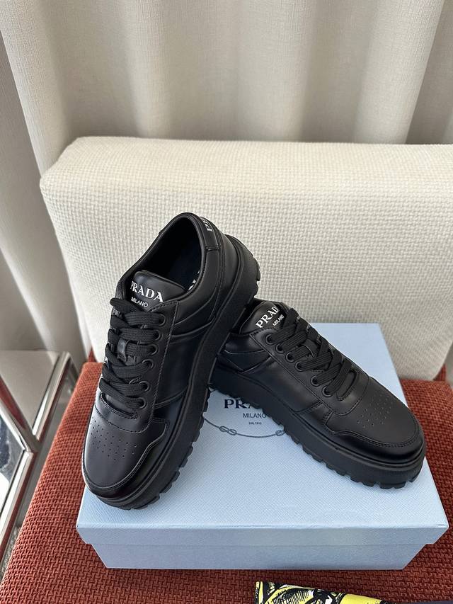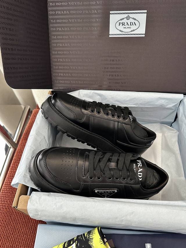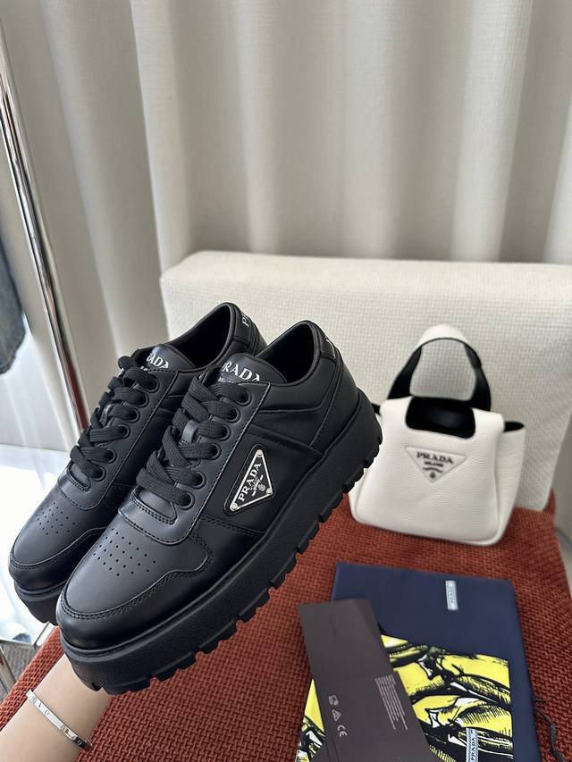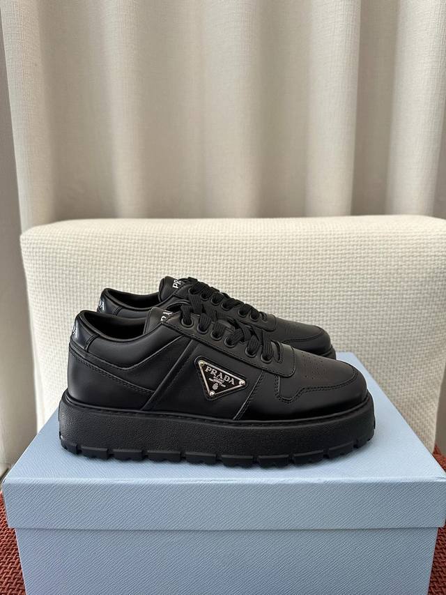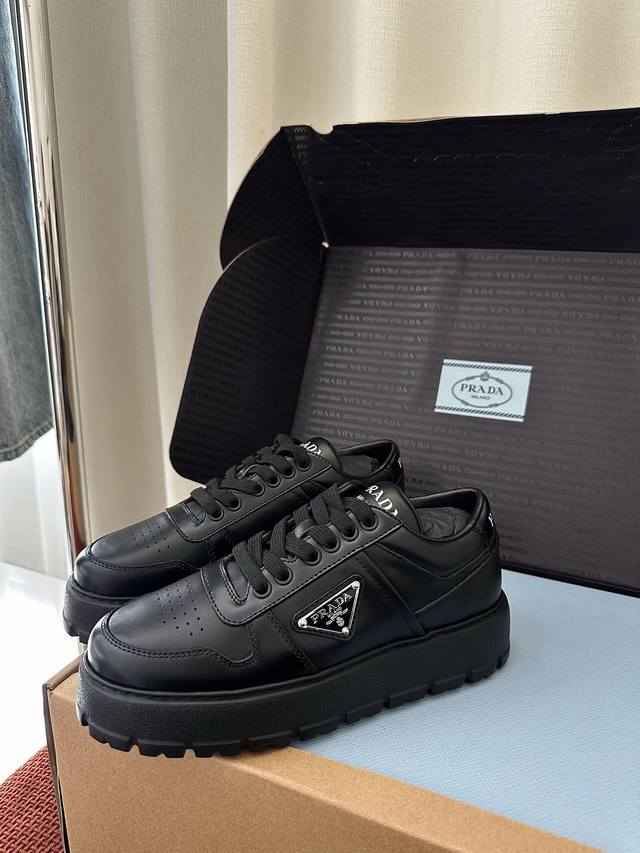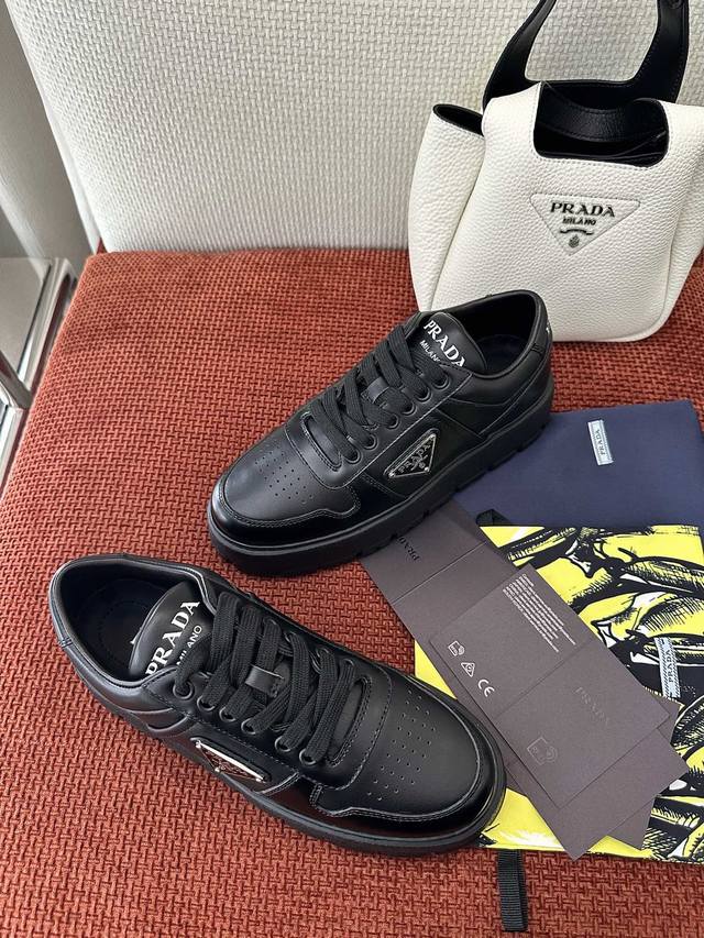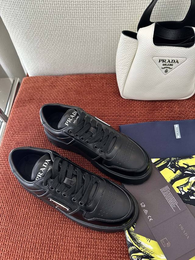 Dongguan Made | Comes with Airplane Box DDD Prada Triangle Logo Leather Sneakers | SS25 New Upgrade DDD Dongguan Made, Proxy Purchase Quality, 1:1 Original Purchase DDD Materials and Craftsmanship: DDD Original cow leather upper DDD Enameled metal triangle logo DDD Silk screen printed lettering on tongue DDD Leather lining DDD Logo lettering on heel DDD Rubber textured sole DDD Size: 35-40 DDD