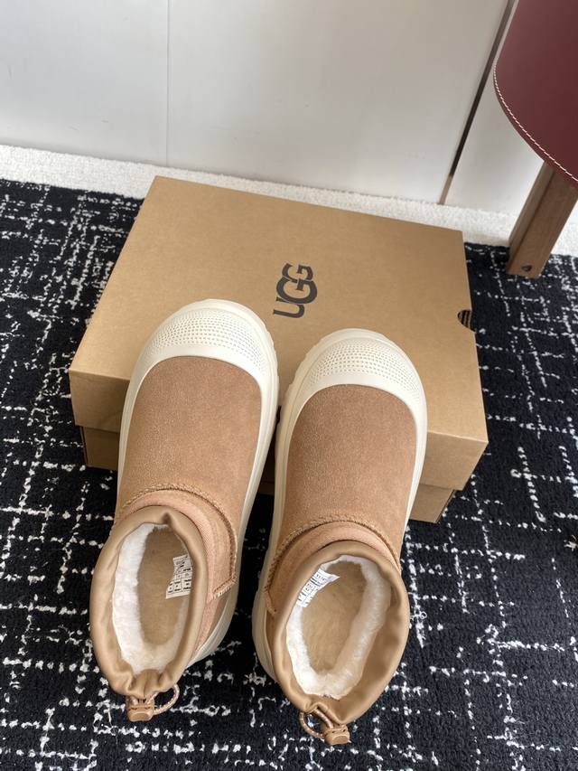 Ugg Tasman Weather Hybrid, a one-second slip-on shoe for both men and women, adds a large orange sole to the classic Tasman shoe silhouette with a functional contrasting color design. The environmentally friendly, waterproof and snow-proof material combines fashion and functionality.