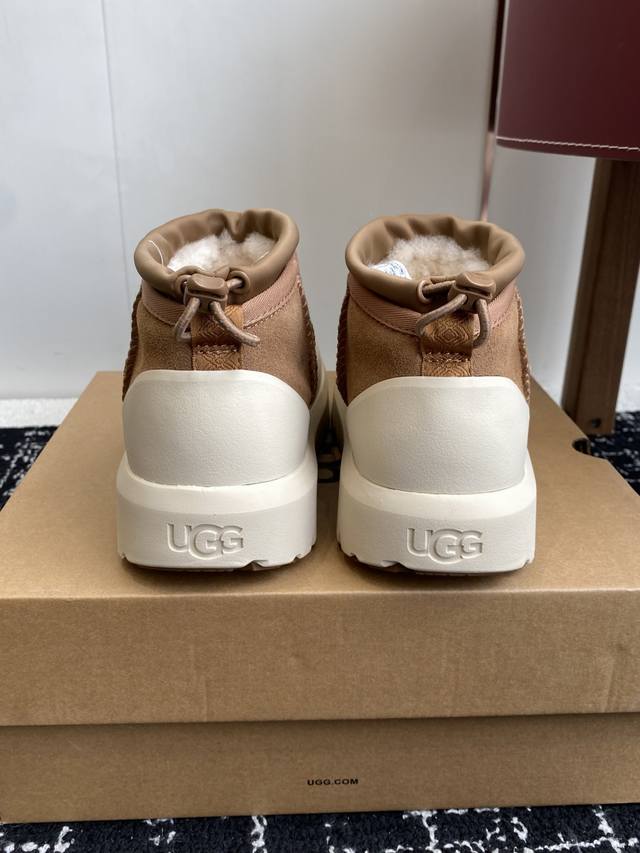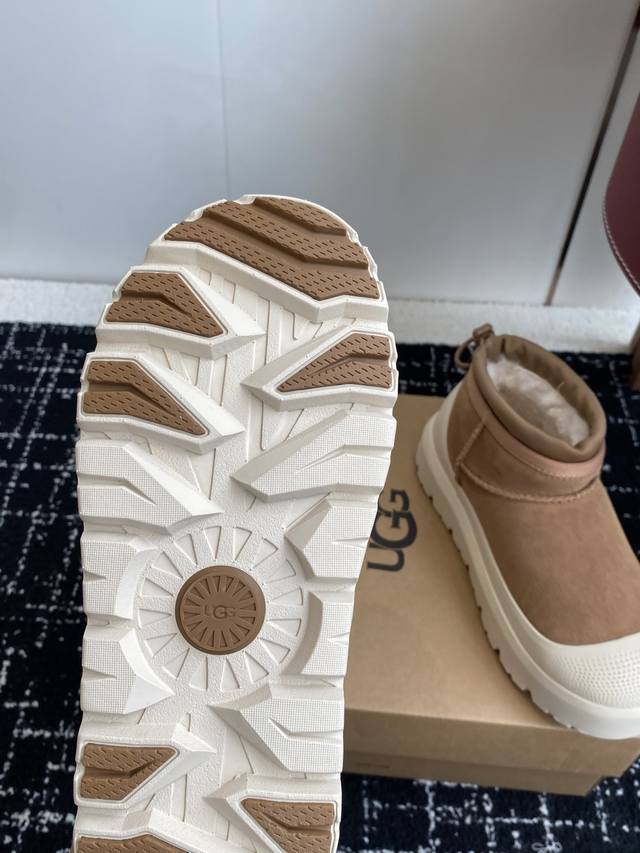 . Paired with the new Ugg Keen furry color-blocked jacket, the bright orange and maroon collide to create a new light outdoor style, opening up a new early autumn travel experience.