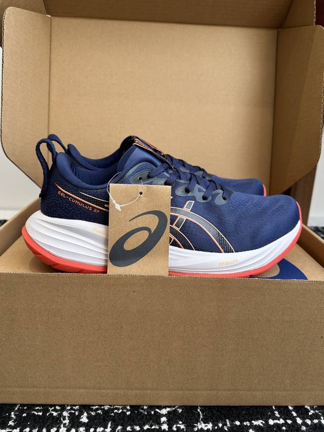 Asics Gel-Cumulus 27 stylish, trendy, comfortable, breathable, cushioned, and responsive casual running shoes! This Gel-Cumulus 27 is newly launched, offering a cloud-like feel. It features dual new technologies: lightweight, responsive, and adaptable to different body shapes; cushioning protection design; a newly upgraded engineered jacquard mesh upper that is lightweight, breathable, comfortable, and dry; Pure Gel cushioning that improves softness and comfort by 65%; Ff Blast Plus midsole for lightweight rebound and efficient support with cloud-like softness; and Fluidride rubber outsole for grip and durability, creating excellent traction and providing a smoother, faster stride! Sizes: 40, 40.5, 41.5, 42, 42.5, 43.5, 44, 45. Note that this shoe runs small; it is recommended to go up one size for a more comfortable fit.
