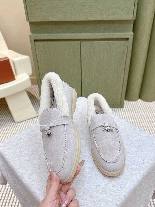 Dongguan-made, high-quality DDD Lp latest style loafers, single shoes, rabbit fur shoes DDD Loro Piana, an Italian high-end brand, is a top-tier luxury brand. Originating in Italy, it pursues quality and craftsmanship, blending innovative technology with traditional Italian style. This brand has always been low-key, but it's considered a top-tier brand in the luxury goods industry. DDD Lp pendant loafers have only a few stores in mainland China, but the quality is exceptional. Impeccable quality and luxurious materials are the pride of the Loro Piana brand, and this suede single shoe perfectly combines both, leaving a lasting impression. After buying their shoes, you won't want to wear many other brands anymore; this is the evaluation of those who have worn these shoes. They won't tire your feet or cause blisters even after wearing them all day. This is due to their meticulous attention to materials, resulting in such a wonderful feeling. DDD Fabric: High-gloss, soft, and textured suede DDD Lining: Rabbit fur, insole, rabbit fur DDD Outsole: Light-colored rubber outsole DDD Sizes: 35-42 DDD Women's size 35.42 is custom-made and non-refundable DDD