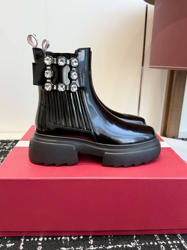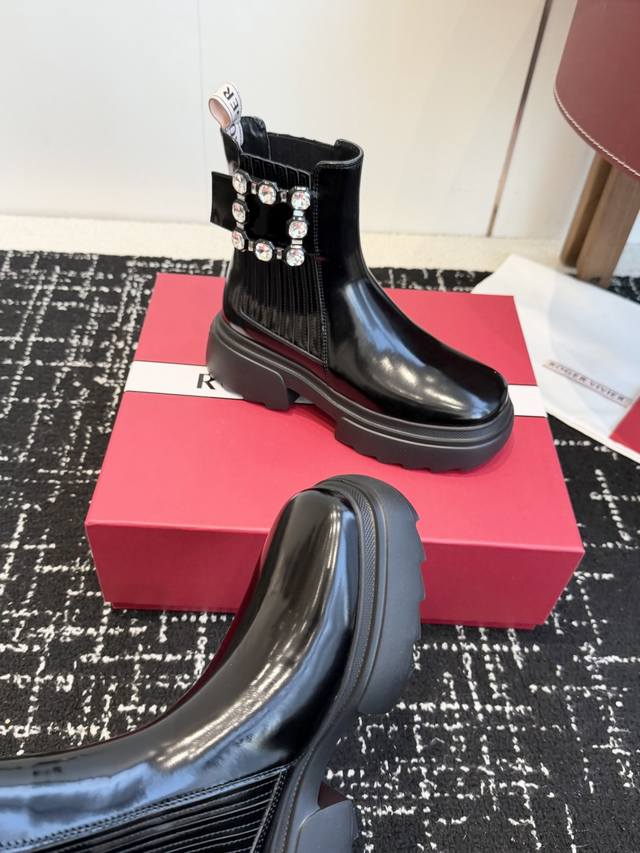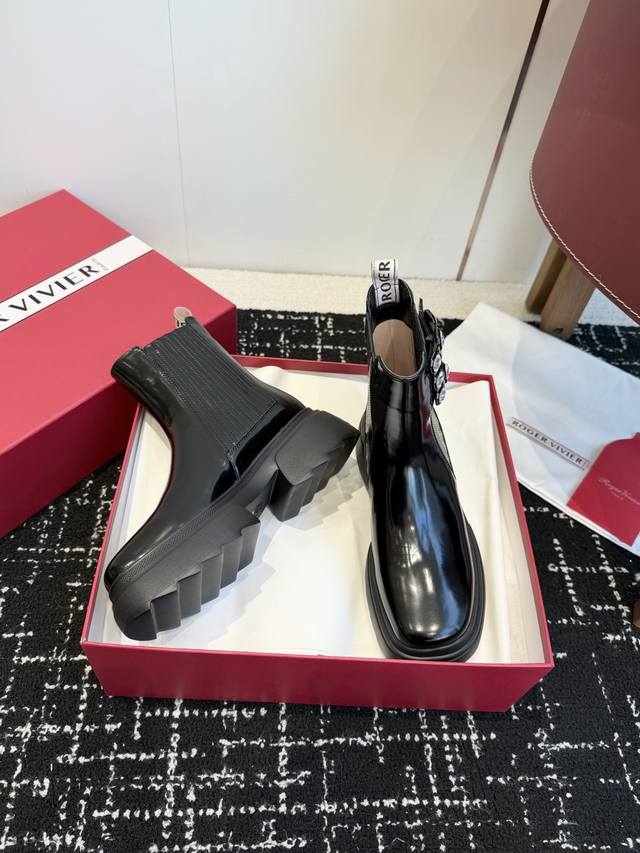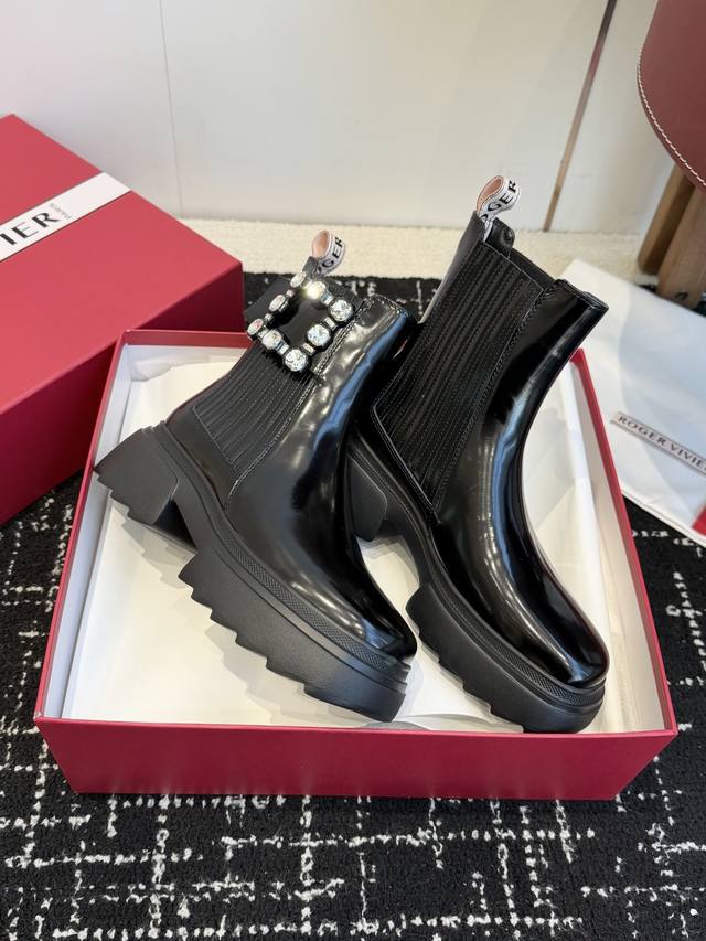 Dongguan-made high-quality single shoes and boots, 390 DDD Roger Vivier newly upgraded autumn/winter RV thick-soled ankle boots and loafers are now in stock! Stylish and fashionable thick-soled ankle boots with padding DDD The serrated sole provides strong grip, ensuring a stable stride. DDD Original split-edge cowhide leather, high-grade square rhinestone buckle, embossed rubber outsole, lightweight and comfortable! DDD Sole thickness: 5.5cm DDD Size: #35-40 Size 40 is custom-made and non-refundable DDD