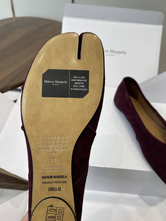Dongguan-made, official website synchronized box packaging. Maison Margiela | Mm6 Margiela 25Ss New Chunky Heel Split-Toe Shoes, Tabi Split-Toe Ballet Flats. Original mold, double-layer genuine leather sole, original last. The shoe shape is very generous and can easily match various styles. A blessing for short legs, instantly transforming them into long legs. Unrestrained by conventions, be yourself! Super soft and comfortable on the feet. Upper: Imported sheepskin; Lining: Original sheepskin; Outsole: Original Italian double-layer genuine leather sole. Size: 35-40. Size 40 is custom-made and non-refundable.