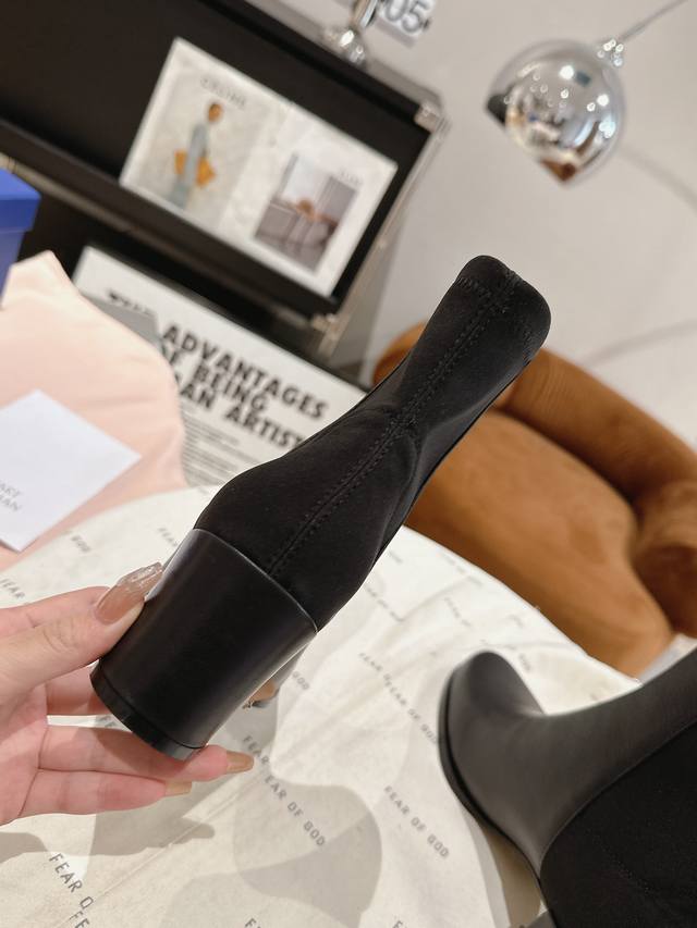 Dongguan-made Stuart Weitzman Soho knee-high boots feature an eye-catching Soho grooved sole and elastic slip-on design, adding a touch of modern urban style to classic knee-high boots. The 60mm grooved sole is in line with current fashion trends while maintaining a lightweight and durable structure, combining style and comfort. A side zipper design makes them easy to put on and take off. These casual and edgy knee-high boots are a trendy fashion item for creating your winter look! Heel height 7.5mm. Material: Elastic fleece lining. Sizes: 35, 36, 37, 38, 39.
