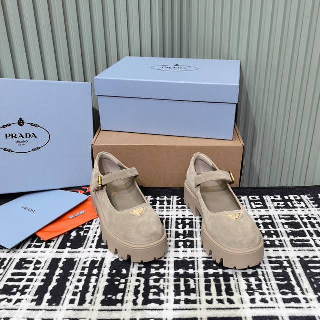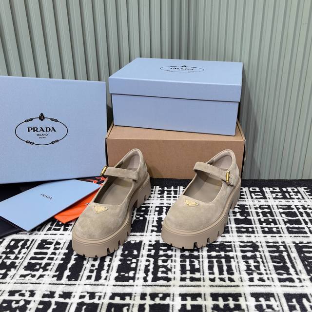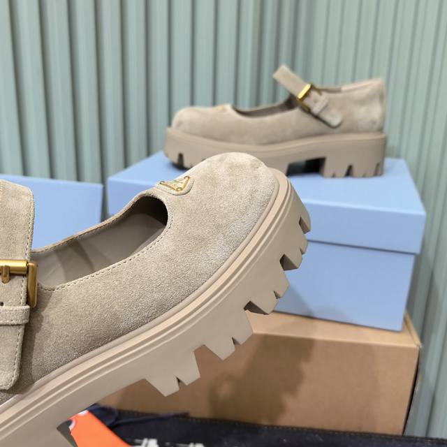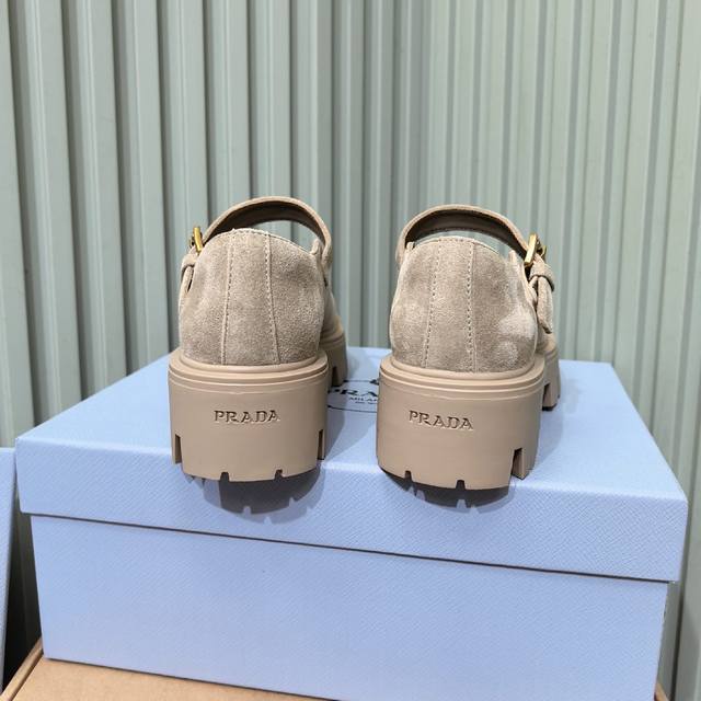 . The geometric design and bold silhouette of Prada's ultra-hot thick-soled Mary Jane Monolith shoe give this shiny leather Mary Jane a new look. This eclectic shoe combines classic lines with bold details, inspired by the inherent duality of Prada's aesthetic. Original, surrogate-level