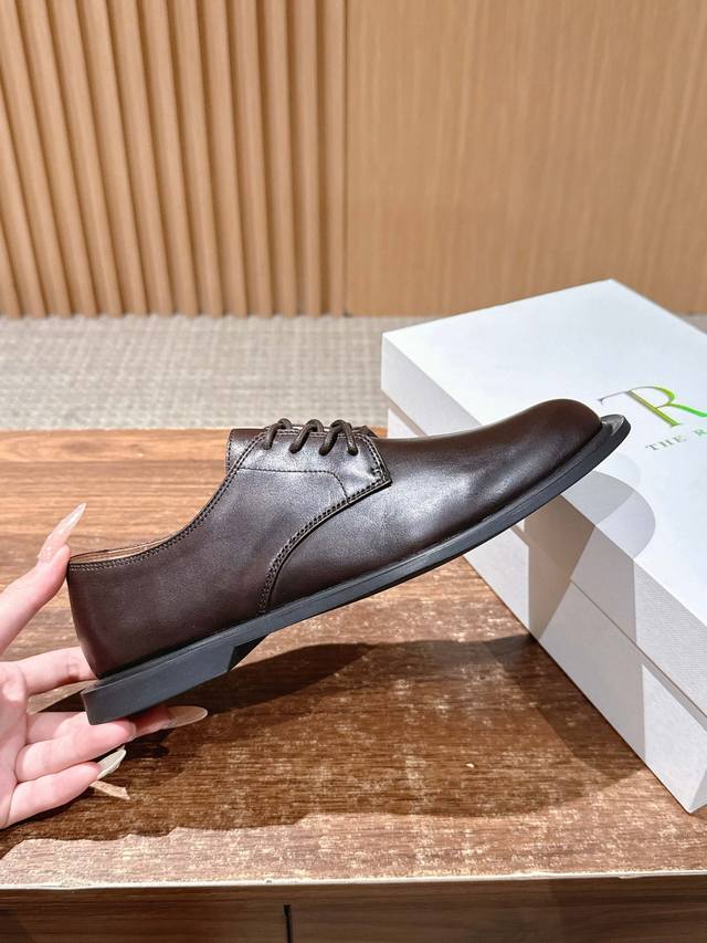 Dongguan-made The Row New Lace-up Round Toe Leather Shoes DDD Beautiful and practical, comfortable, and full of retro British style, these Maillard shoes give off a cool, retro British vibe. Simply put, they're a pair of stylish leather shoes that are both chic and sweet, very sophisticated! Perfect for winter, pair them with socks for a casual Maillard look, fashionable and youthful DDD Material: Imported calfskin, comfortable, soft, and glossy, and most importantly, easy to care for DDD Lining: Imported sweat-absorbing and breathable cowhide DDD Outsole: Original molded ultra-light rubber outsole DDD Sizes: 35 36 37 38 39 40 Sizes 40 are non-refundable and non-exchangeable DDD