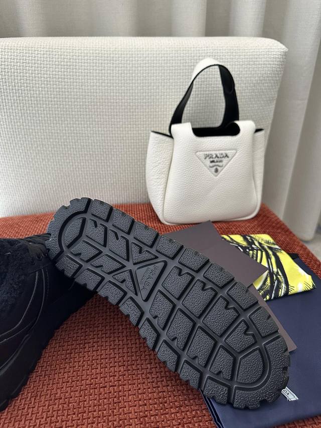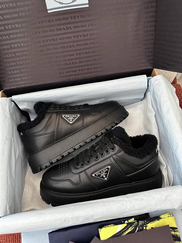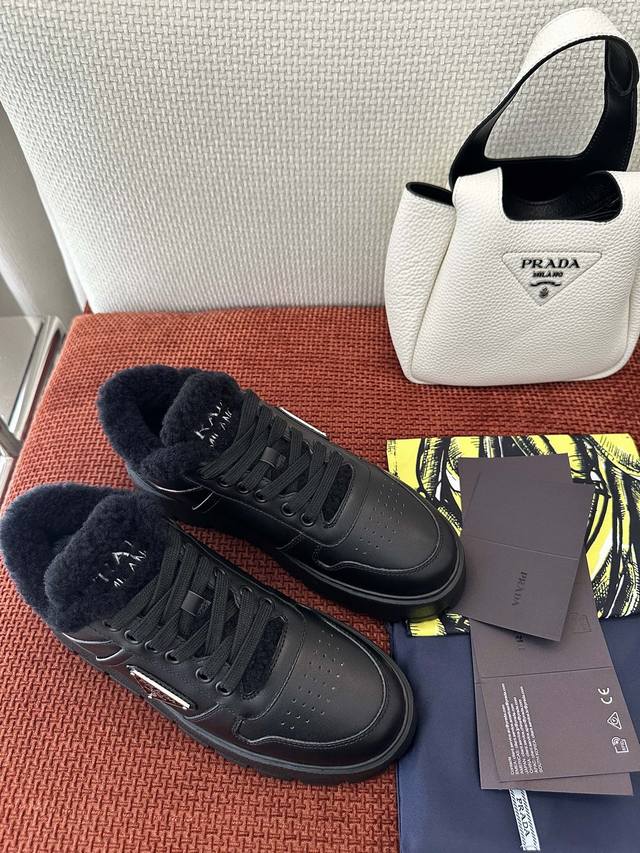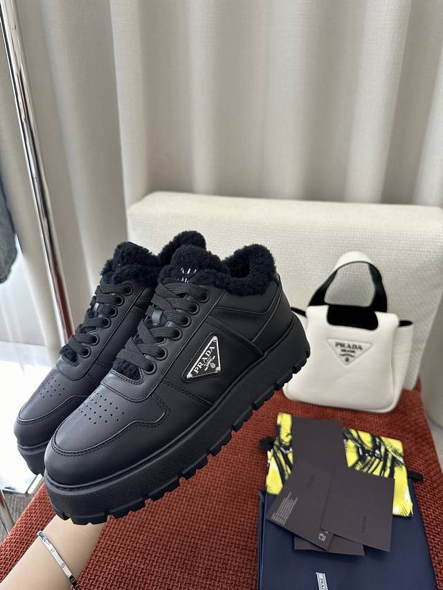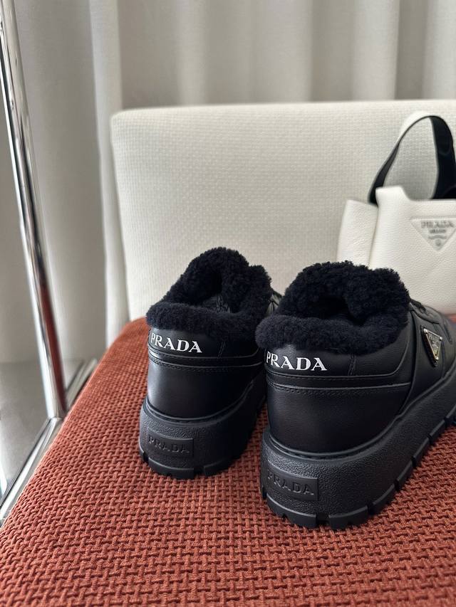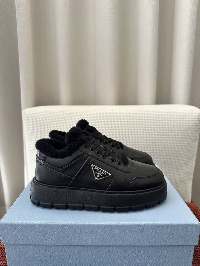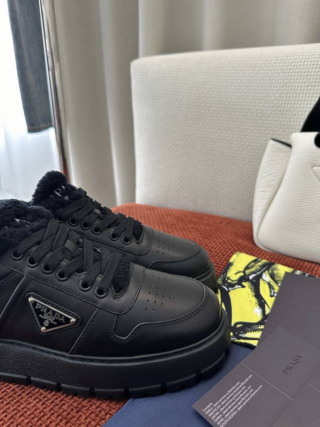 Dongguan-made *Triangle logo leather and lamb wool sneakers