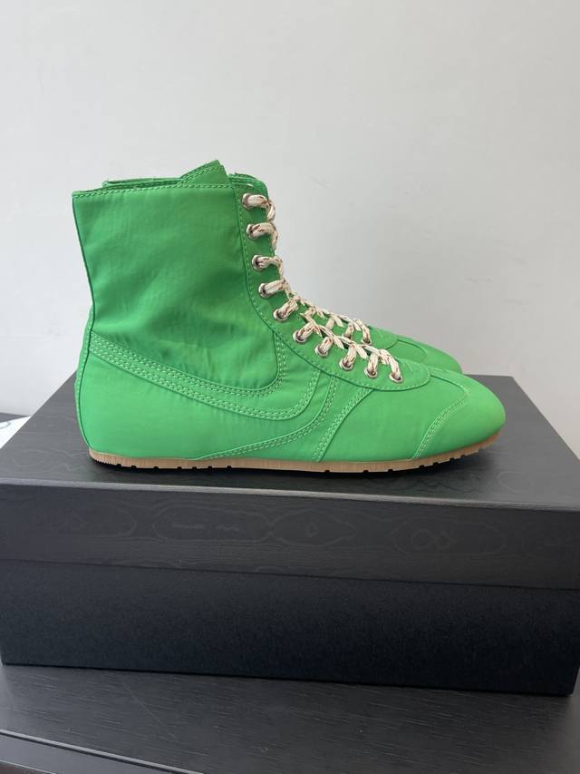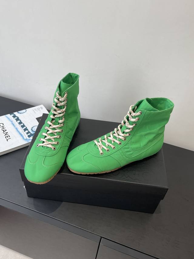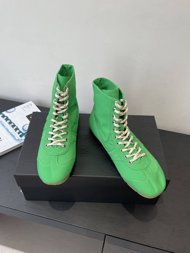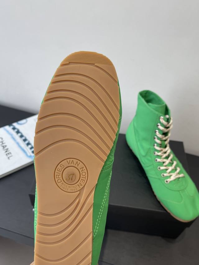 Dries Van Noten 2026 Spring/Summer New Casual Sneakers. This season, Dvn makes a full comeback to its classic training shoes, continuing the brand's consistent poetic colors, blending soft fabrics with retro structures to create a series of "elegant sporty" style shoes. The juxtaposition of satin and suede, from delicate suede to silky satin uppers, constructs a "sports x luxury" vocabulary. Retro silhouettes are upgraded, continuing the classic boxing shoe structure with low-top, mid-top, and high-top silhouettes covering all aspects, paying homage to the 90s fighting and training culture. The sole maintains a lightweight retro rubber sole. A new color system awakens the sensory experience of spring and summer. Fresh macarons, saturated bright colors, and unisex classics together create a "full-color sneaker wardrobe." High-gloss satin rubber outsole. Sizes: Women's 35-40, Men's 39-45, Women's 40, Men's 45. Custom orders are available.