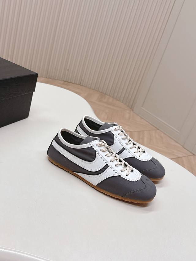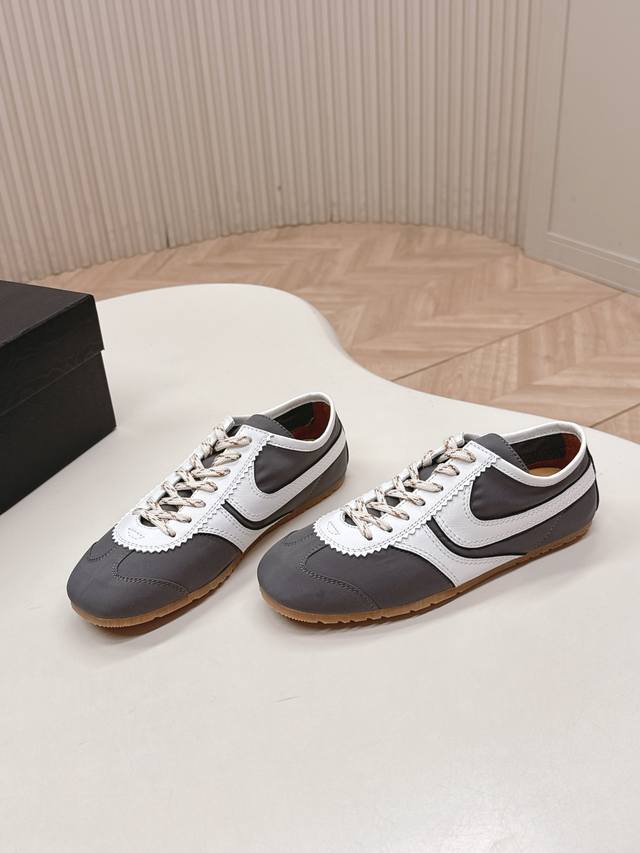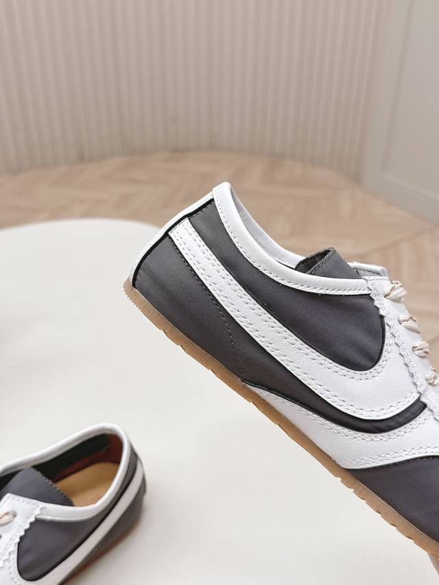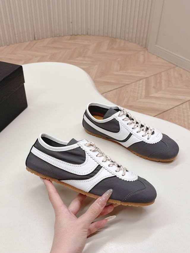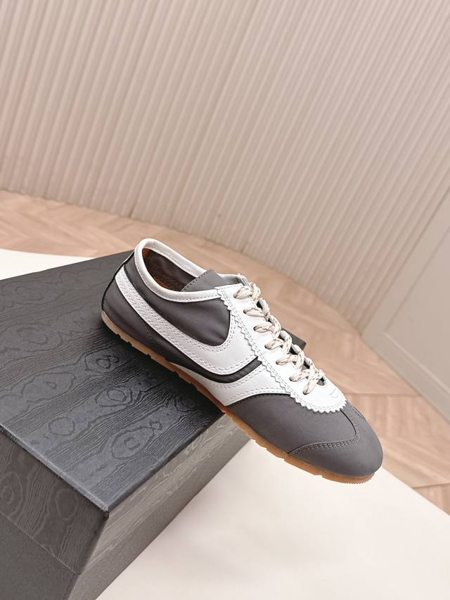 Dries Van Noten 25Fw Fall/Winter New Arrival, German Training Sneakers. Made with premium forged leather and patchwork uppers, inspired by retro style, these shoes offer a fresh interpretation of classic design. Lightweight, comfortable, and breathable, they're a must-have for all seasons. Whether paired with jeans or a skirt, they effortlessly switch styles. The soft material makes them comfortable for extended wear, even while shopping. This detail really impressed me! Material: High-gloss satin cowhide leather. Outsole: Rubber. Size: Women's 35-40, Men's 39-45.