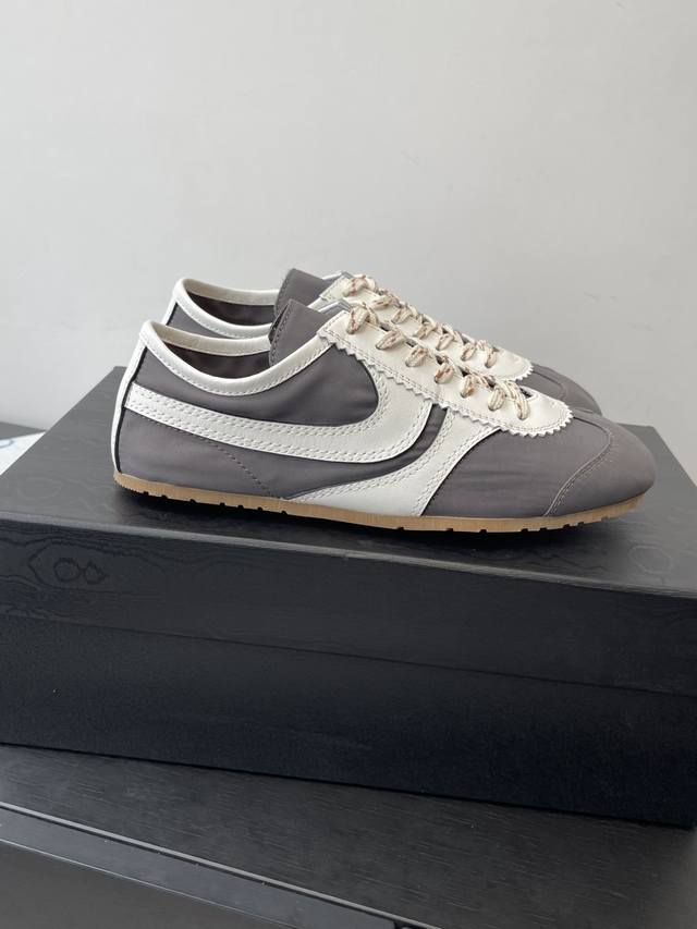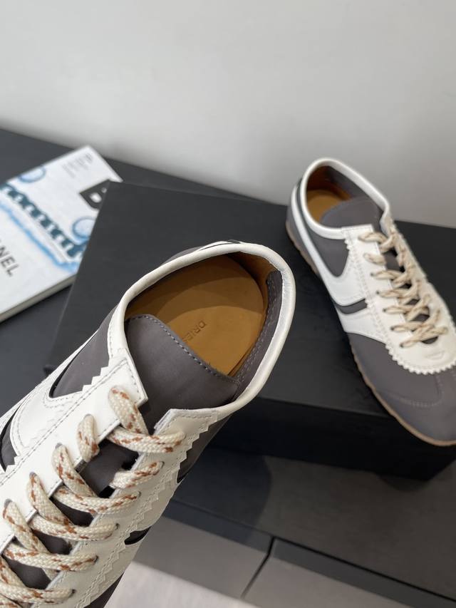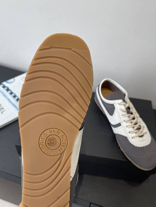Dries Van Noten Dvn Marathon Retro German Training Shoes for Couples. The designer has transformed and subverted classic elements to create practical and stylish athletic footwear. The upper is made of soft suede and leather, and features this year's trendy nylon twisted rope laces, achieving a perfect balance between practicality and fashion. Sizes: 35-45 (Women's 40, Men's 45). Custom orders are available.