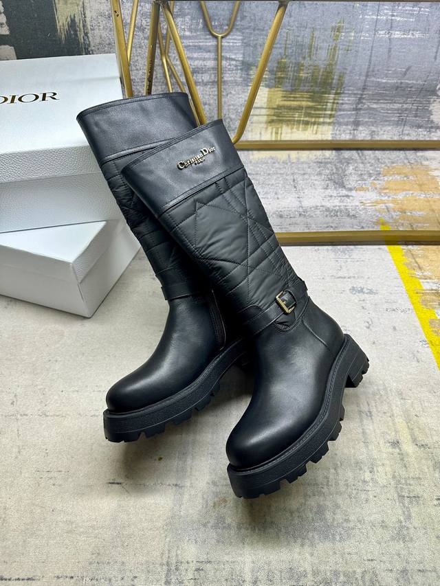 d-Town boots, black leather and nylon upper, nylon with cannage stitching, decorative side straps embellished with a gold-finished metal logo and adjustable buckle laces to enhance the style and highlight the ankle line. Sheepskin lining, sizes 35-42,