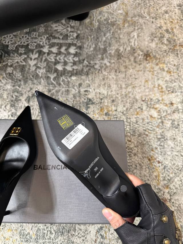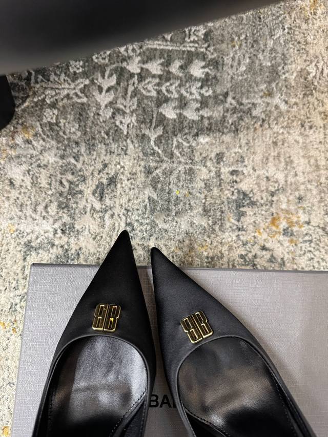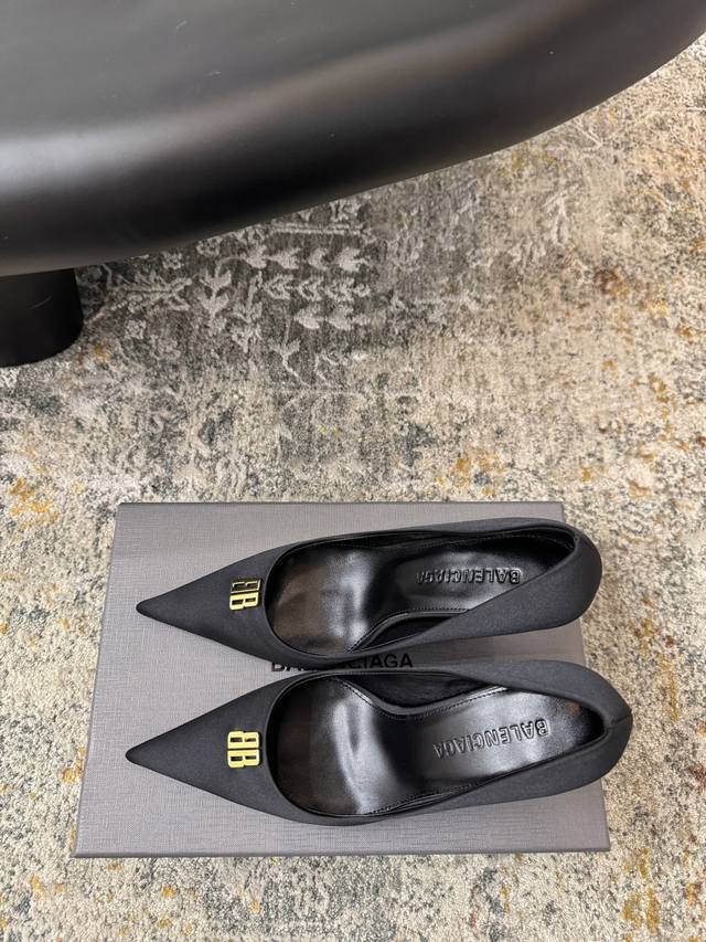 C&D Metal Logo Single Shoes High Heel 9 cm Mid Heel 5.5 cm Black Suede Brand Log