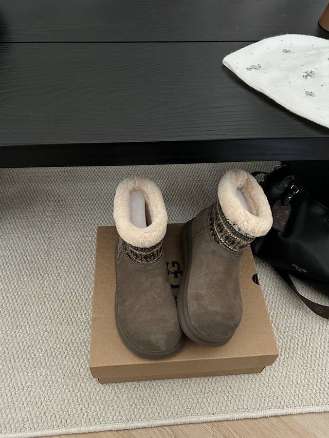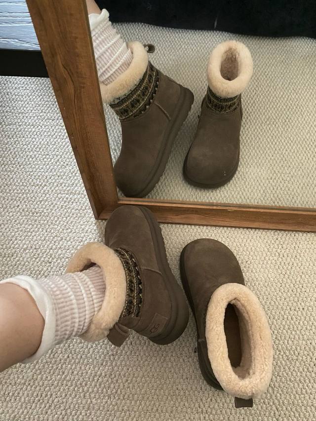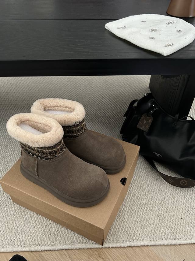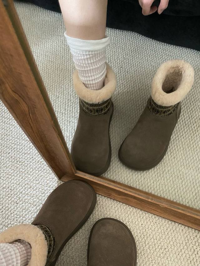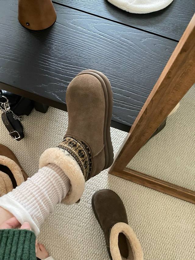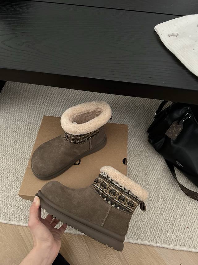 Ethnic-style totem snow boots with sheepskin collar and ethnic-style jacquard webbing DDD Wear warmth and exotic style on your feet! Thick sole and rounded shape, like walking on cotton, making you look taller and slimmer! Low-saturation colors are sophisticated to the core, and they look like they were made for you with anything. #Warm and stylish snow boots! Three colors: chestnut, tan, and sand, sizes 35-40! DDD