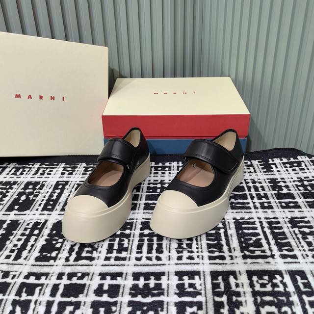 Exclusive Edition, Top-of-the-Line Chip Edition. Marni's latest wide-toe women's shoes are both luxurious and comfortable. Available in both white and black, they're easy to care for, feel incredibly comfortable, and never irritate your feet. They also enhance height, and the wide toe box creates a cute, irresistible touch. They're incredibly versatile and can be paired with anything. Made from genuine, custom-made cowhide leather, with a cowhide lining and insole, and featuring a uniquely molded outsole, the rounded toe box enhances height. Paired with skirts or pants, they're both stylish and comfortable, creating a look that softens with wear. I always thought thick-soled shoes would be bulky, but they're surprisingly stylish and lightweight. Best of all, the leather is incredibly easy to clean; it's perfect for a movie date. Size: 35-40M