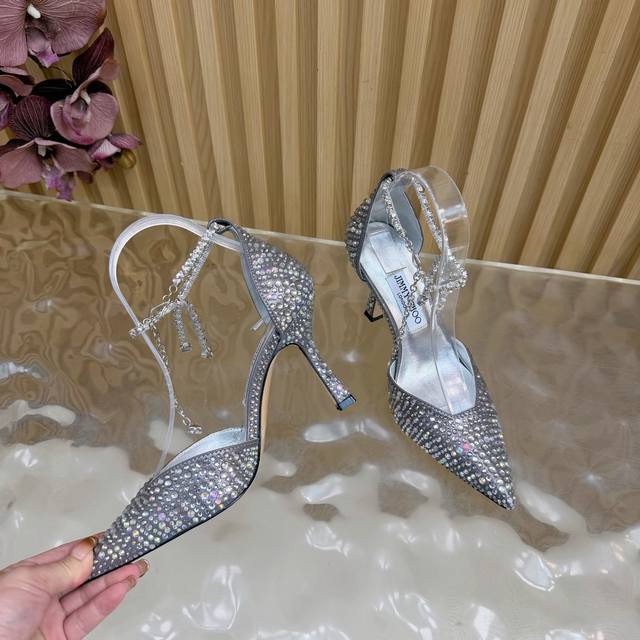 Exclusive New Jimmy Choo Heavy-Duty Crystal Pointed-Toe High-Heeled Chain Sandals DDD Absolutely stunning crystal shoes, so beautiful you can't take your eyes off them DDD The shoe shape is very delicate, not too narrow or long DDD Ample internal space allows your toes to relax DDD Rhinestones outline a charming curve on the instep, simply gorgeous DDD 360-degree ethereal feel, luxurious yet understated!! DDD Imported crystal material DDD Imported sheepskin lining DDD Custom A-grade Italian genuine leather sole injection molding outsole, custom, no returns or exchanges DDD Heel height: 9cm DDD Size: 35-39 40 41 42 (customizable) DDD