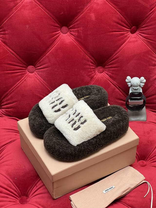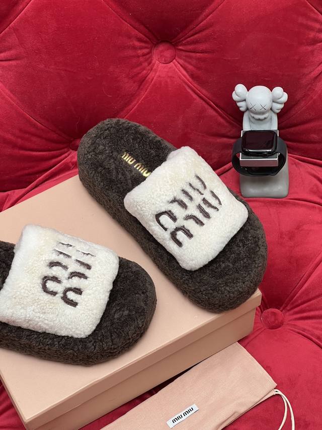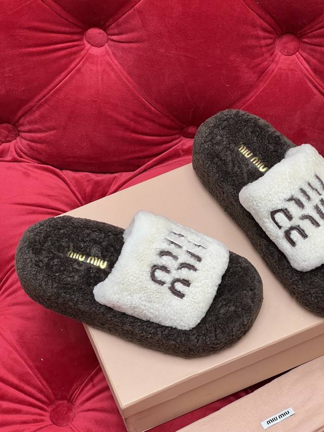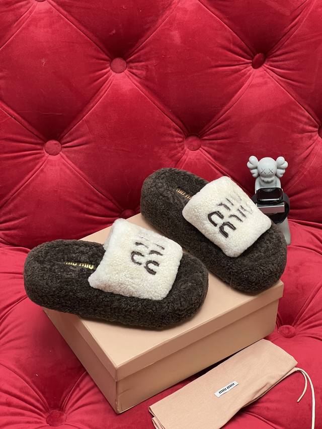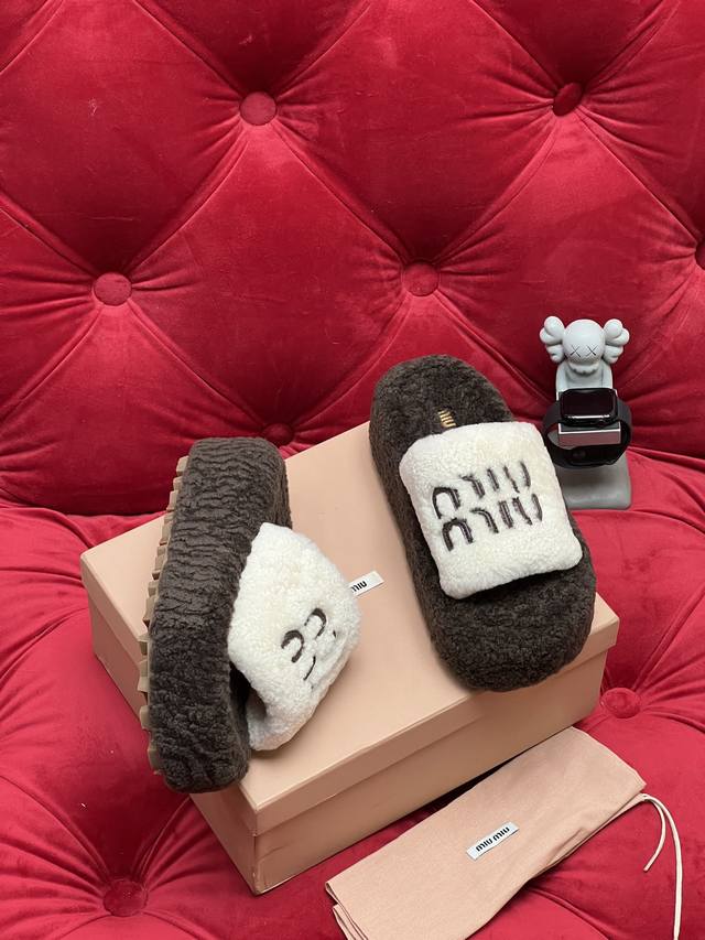 Exclusive Real Shots Top-Tier Miu Miu 26Sswf Autumn New Arrival Letter Platform Fleece Sandals DDD Fashionable, warm, and comfortable, a perfect blend to keep you beautiful and warm this winter. Grab a pair now and start your winter fashion journey! DDD Upper: Imported European 100% Wool DDD Size: 35-41 40 41 Customized DDD