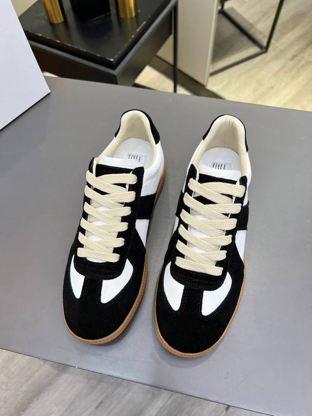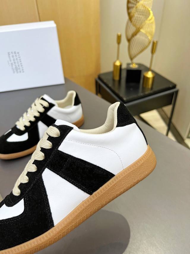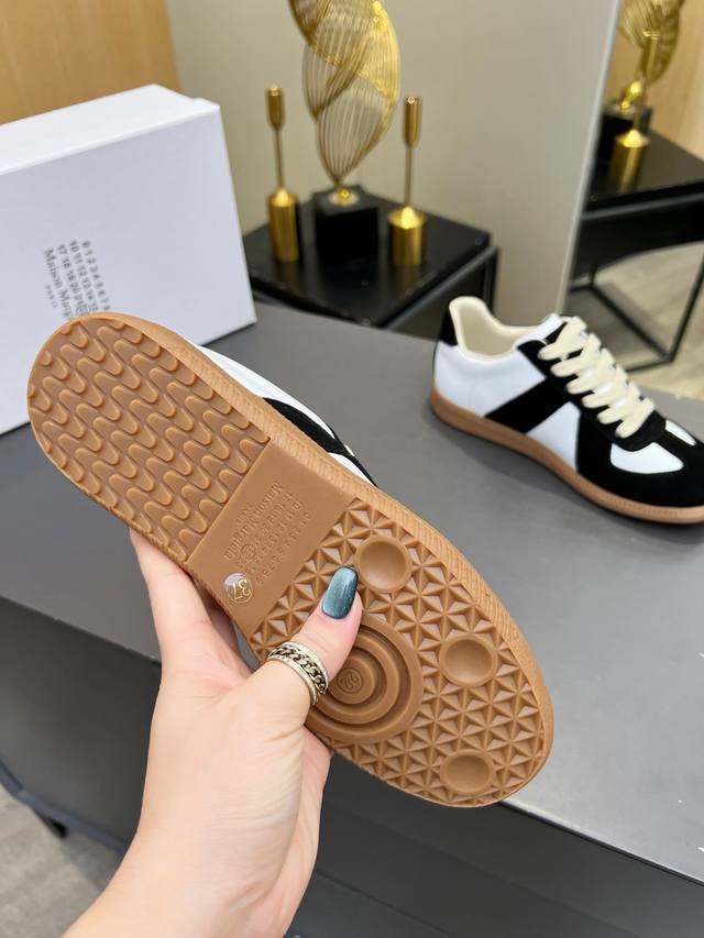 Just hearing the retro style immediately brings to mind the classic M*Arginal. Retro and fashionable, clean and refreshing color schemes for spring, summer, autumn and winter, comfortable, cool and casual style design, very Margiela style, pressure-free to wear, full of pioneering elements, original packaging, a light luxury trendy style, combining multiple elements designed by Margiela designers. This German training shoe continues the classic T-shaped genuine leather splicing, after multiple careful improvements by the design team, just to let you experience the most original military flavor