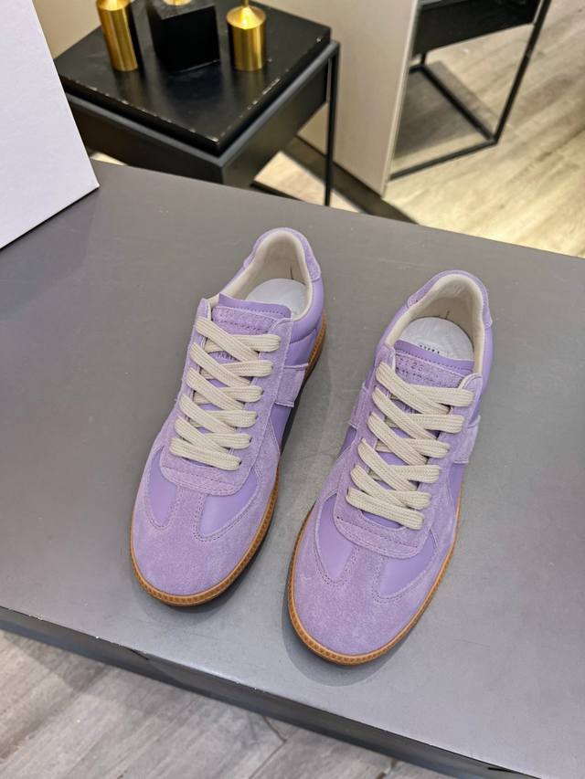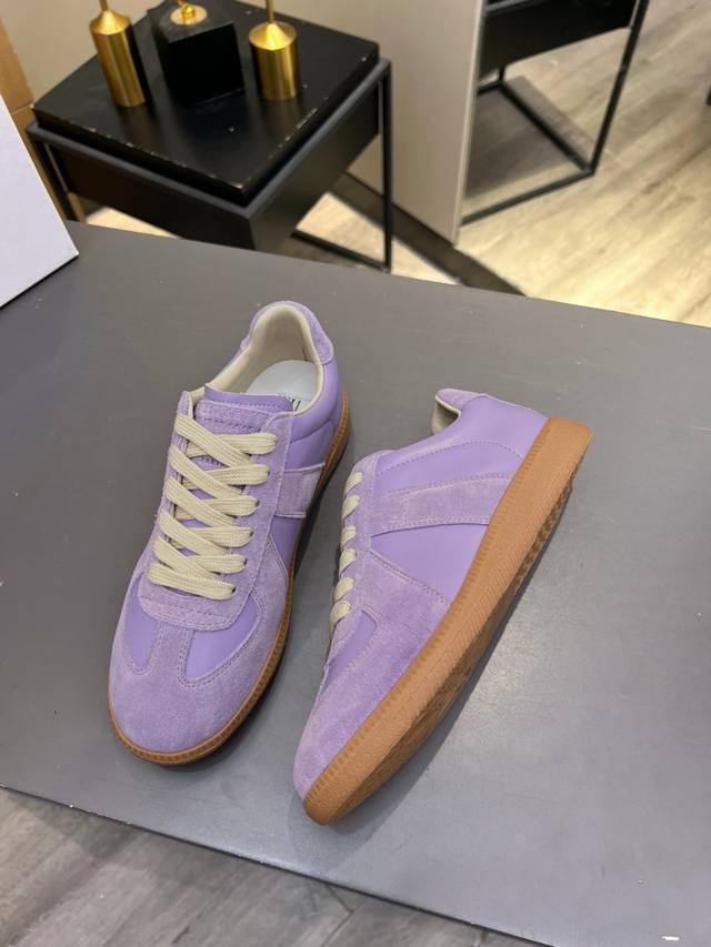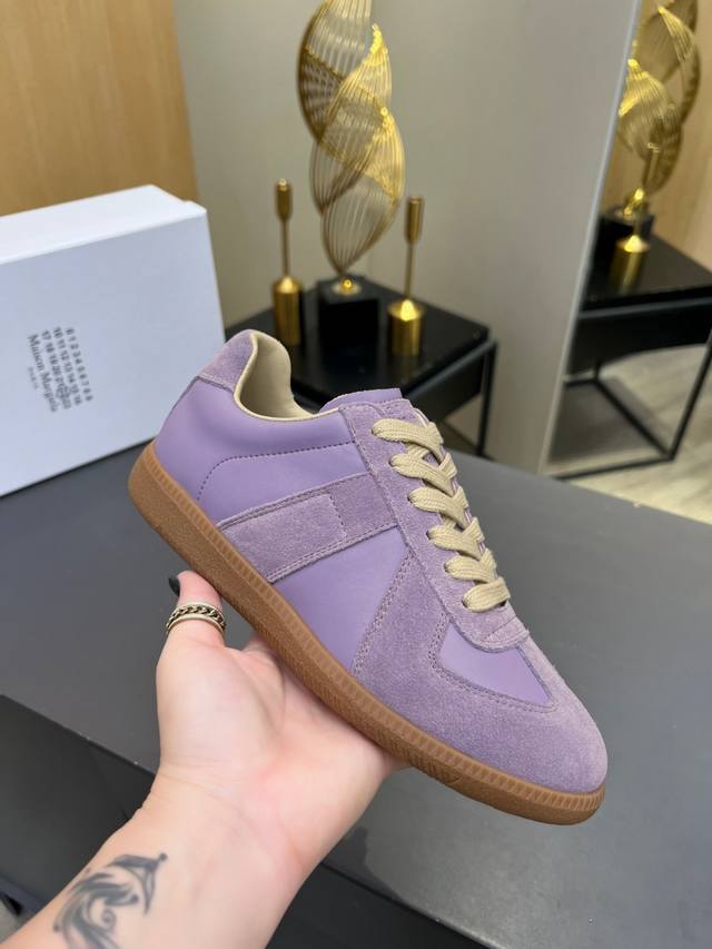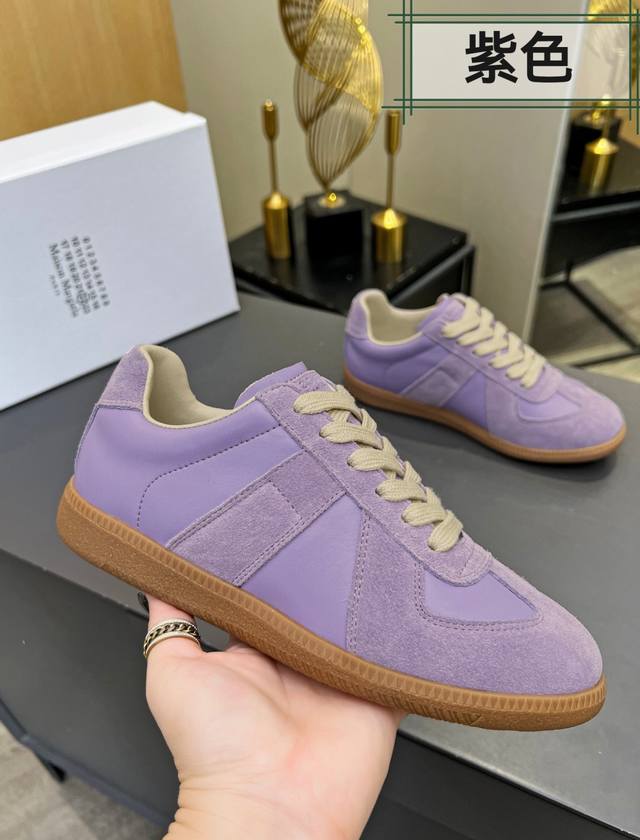 Just hearing the retro style immediately brings to mind the classic M*Arginal. Retro and fashionable, clean and refreshing color schemes for spring, summer, autumn and winter, comfortable, cool and casual style design, very Margiela style, pressure-free to wear, full of pioneering elements, original packaging, a light luxury trendy style, combining multiple elements, designed by Margiela designers, this German training shoe continues the classic T-shaped genuine leather splicing, after multiple careful improvements by the design team, just to let you experience the most original military flavor