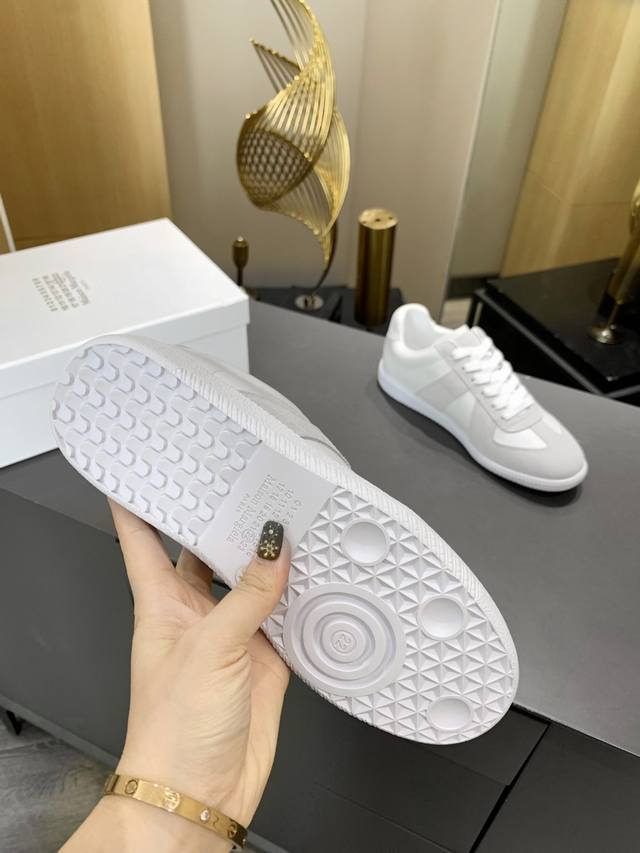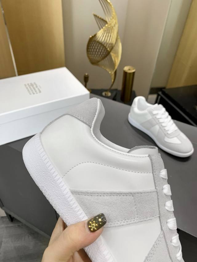 Just hearing the retro style immediately brings to mind the classic M*Arginal. Retro and fashionable, clean and refreshing color schemes for spring, summer, autumn and winter, comfortable, cool and casual style design, very Margiela style, pressure-free to wear, full of pioneering elements, original packaging, a light luxury trendy style, combining multiple elements designed by Margiela designers. This German training shoe continues the classic T-shaped genuine leather splicing, after multiple careful improvements by the design team, just to let you experience the most original military flavor
