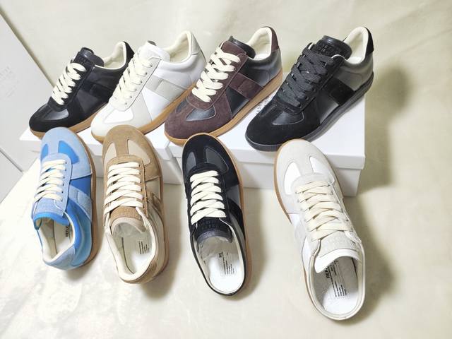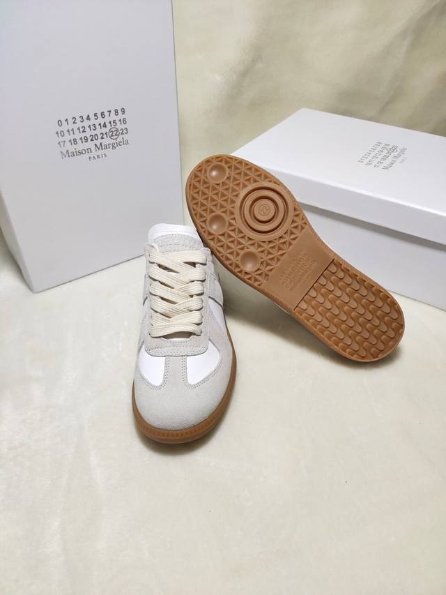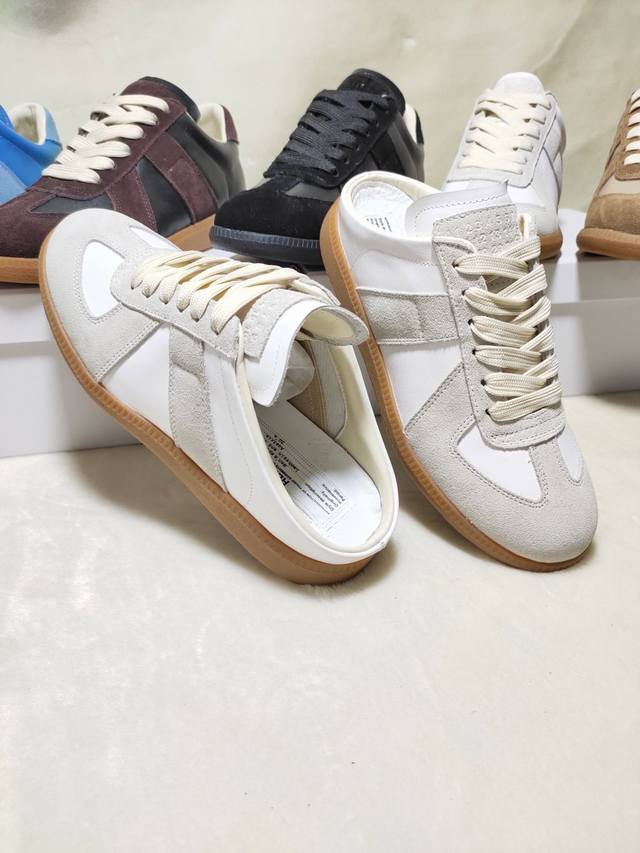 Just hearing the retro style immediately brings to mind the classic M*Arginal. Retro and fashionable, clean and refreshing color schemes for spring, summer, autumn and winter, comfortable, cool and casual style design, very Margiela style, pressure-free to wear, full of pioneering elements, original packaging, a light luxury trendy style, combining multiple elements designed by Margiela designers. This German training shoe continues the classic T-shaped genuine leather splicing, after multiple careful improvements by the design team, just to let you experience the most original military flavor
