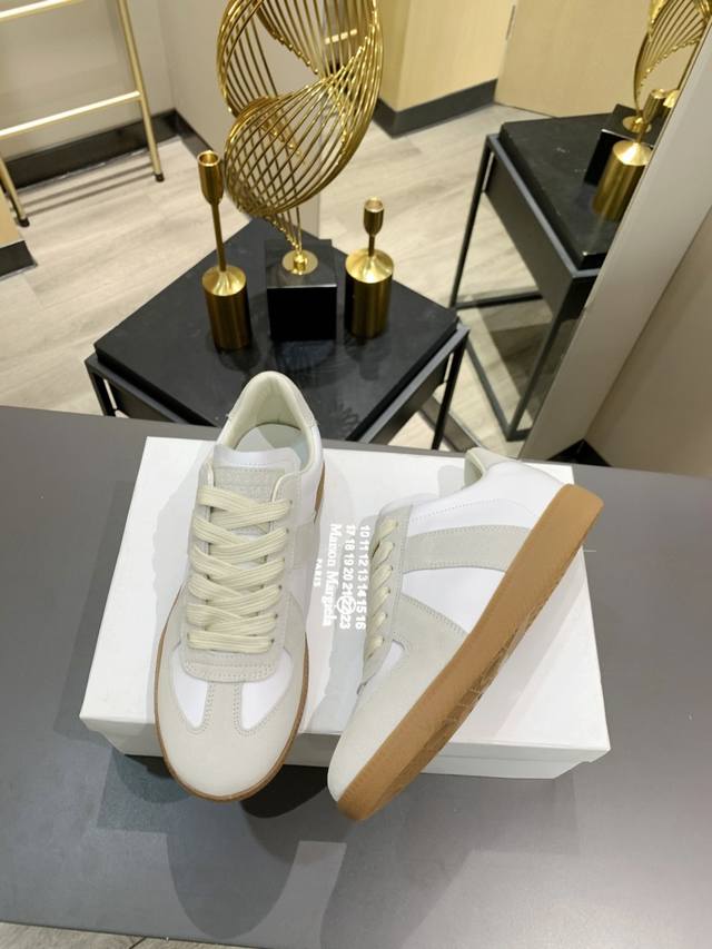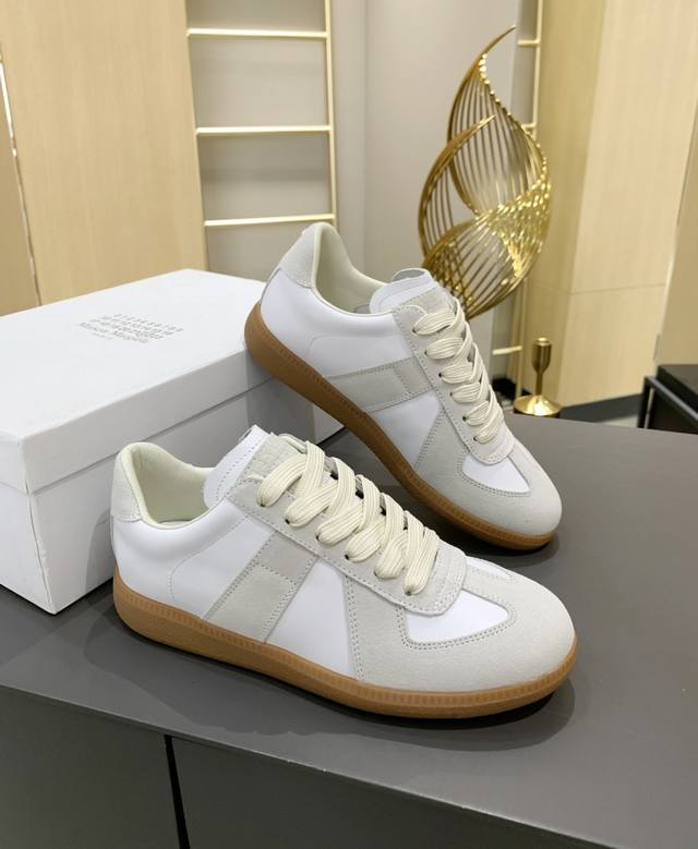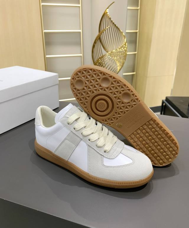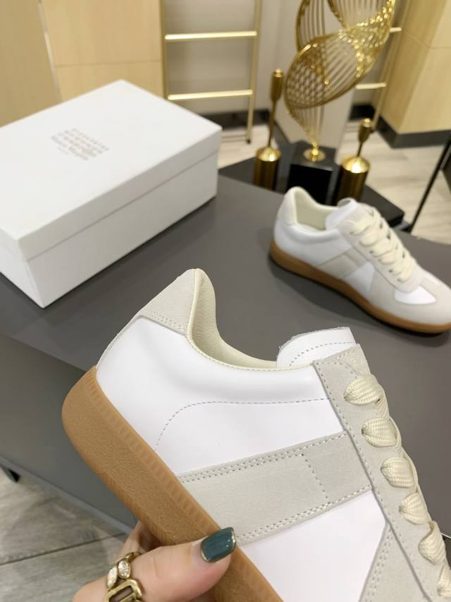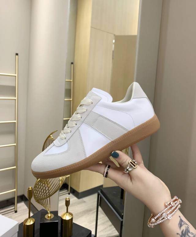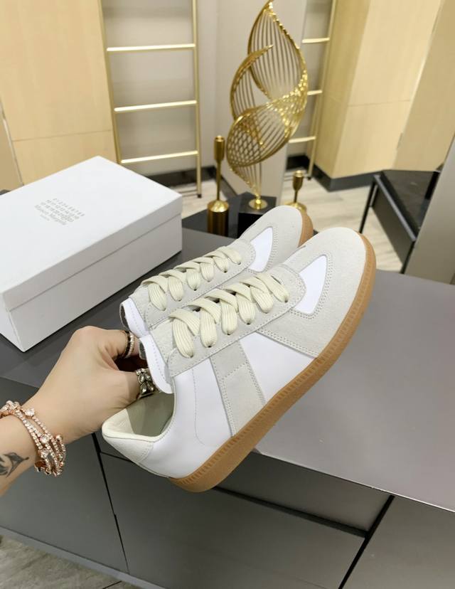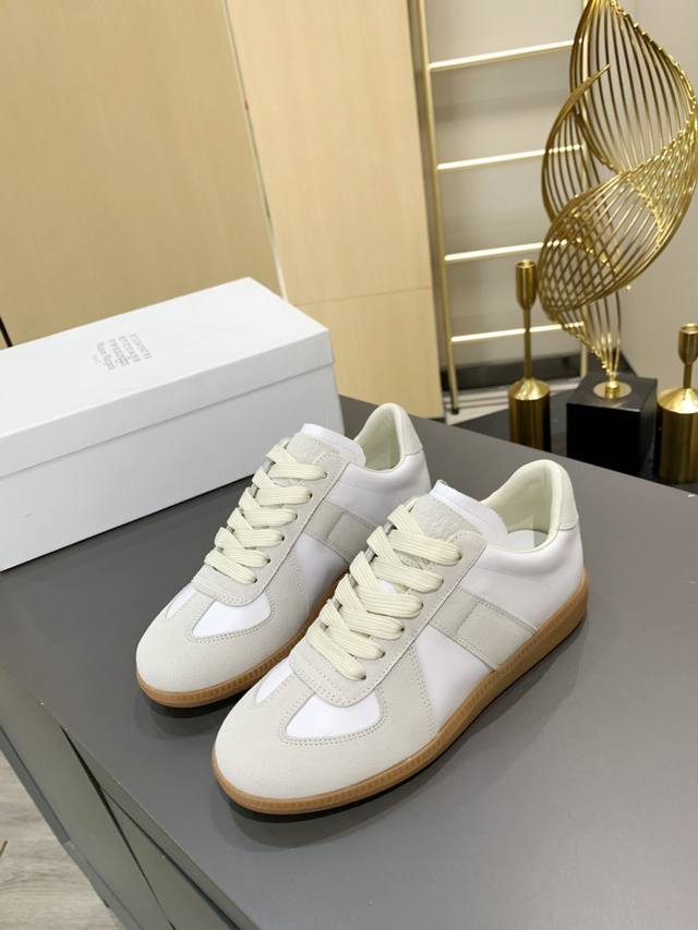 Just hearing the retro style immediately brings to mind the classic M*Arginal. Retro and fashionable, clean and refreshing color schemes for spring, summer, autumn and winter, comfortable, cool and casual style design, very Margiela style, pressure-free on the feet, full of pioneering elements, original packaging, a light luxury trendy style, combining multiple elements designed by Margiela designers. This German training shoe continues the classic T-shaped genuine leather splicing, after multiple careful improvements by the design team, just to let you experience the most original military flavor
