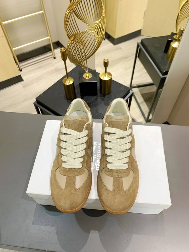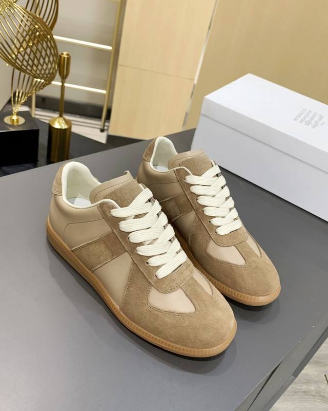 Just hearing the retro style immediately brings to mind the classic M*Arginal. Retro and fashionable, clean and refreshing color schemes for spring, summer, autumn and winter, comfortable, cool and casual style design, very Margiela style, pressure-free to wear, full of pioneering elements, original packaging, a light luxury trendy style, combining multiple elements, designed by Margiela designers, this German training shoe continues the classic T-shaped genuine leather splicing, after multiple careful improvements by the design team, just to let you experience the most original military flavor
