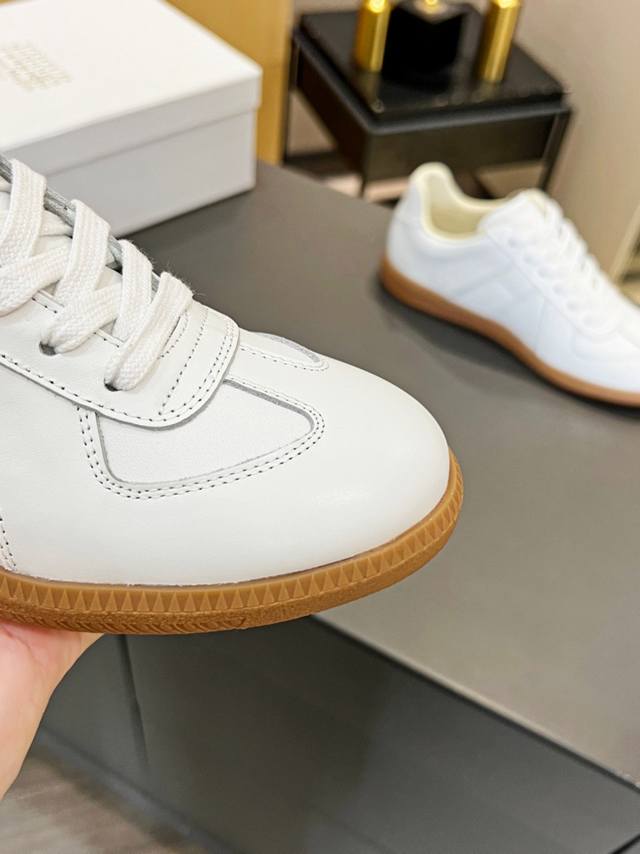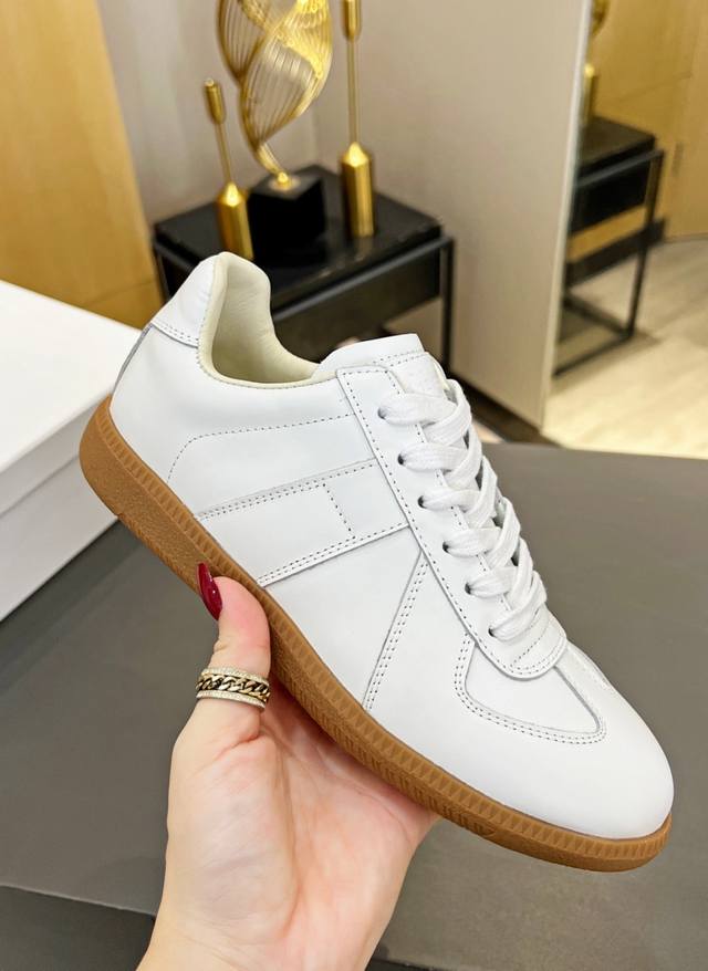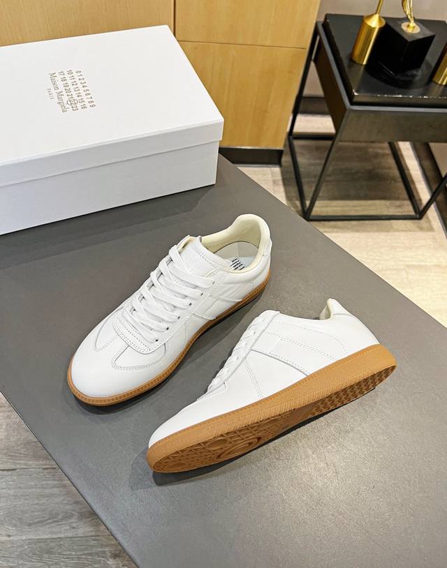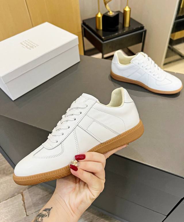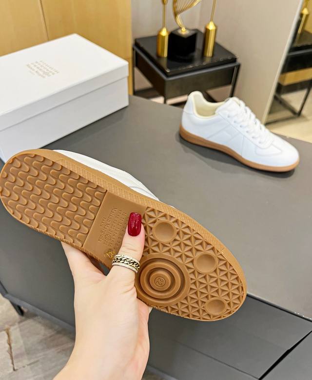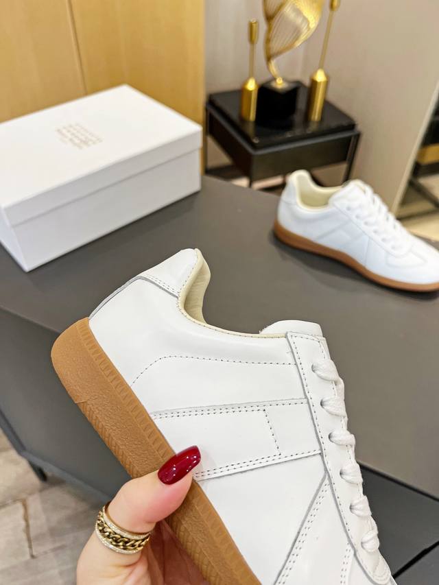 Just hearing the retro style immediately brings to mind the classic M*Arginal. Retro and fashionable, clean and refreshing color schemes for spring, summer, autumn and winter, comfortable, cool and casual style design, very Margiela style, pressure-free on the feet, full of pioneering elements, original packaging, a light luxury trendy style, combining multiple elements, designed by Margiela designers, this German training shoe continues the classic T-shaped genuine leather splicing, after multiple careful improvements by the design team, just to let you experience the most original military flavor