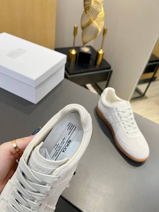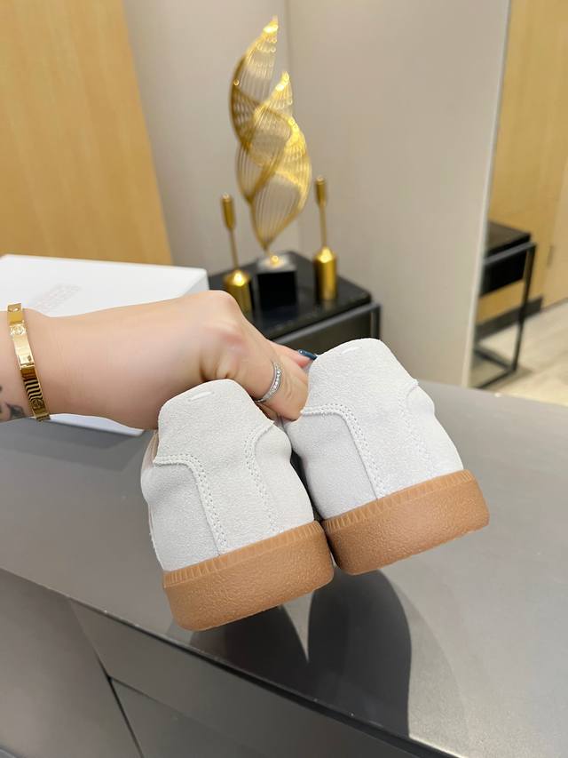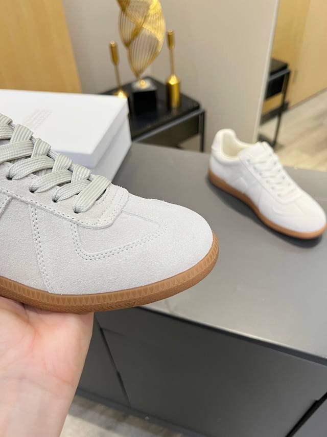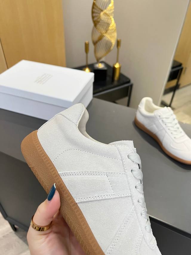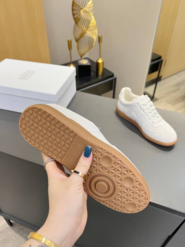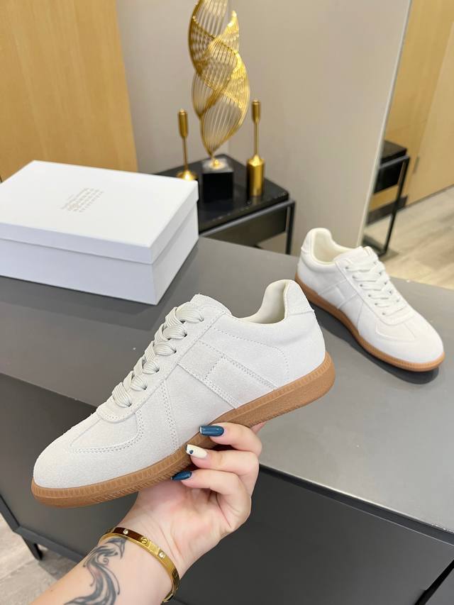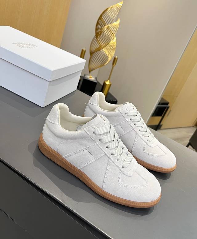 Just hearing the retro style immediately brings to mind the classic M*Arginal. Retro and fashionable, clean and refreshing color schemes for spring, summer, autumn and winter, comfortable, cool and casual style design, very Margiela style, pressure-free to wear, full of pioneering elements, original packaging, a light luxury trendy style, combining multiple elements designed by Margiela designers. This German training shoe continues the classic T-shaped genuine leather splicing, after multiple careful improvements by the design team, just to let you experience the most original military flavor