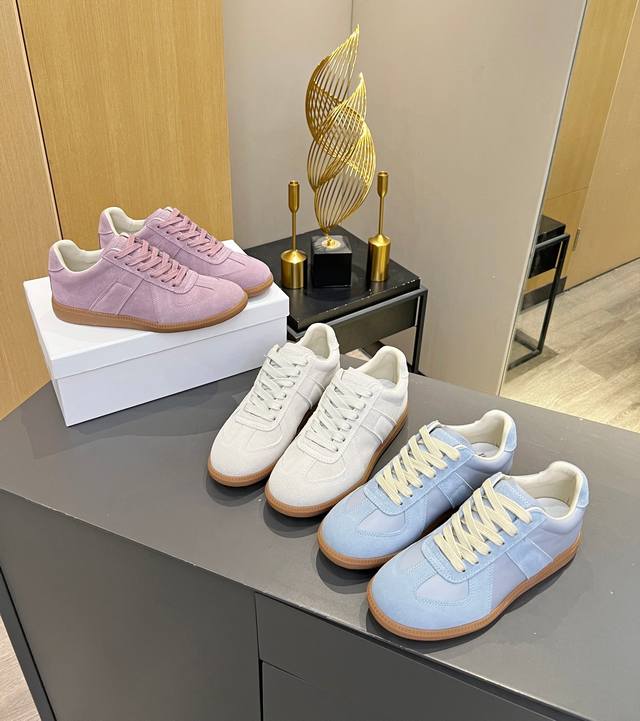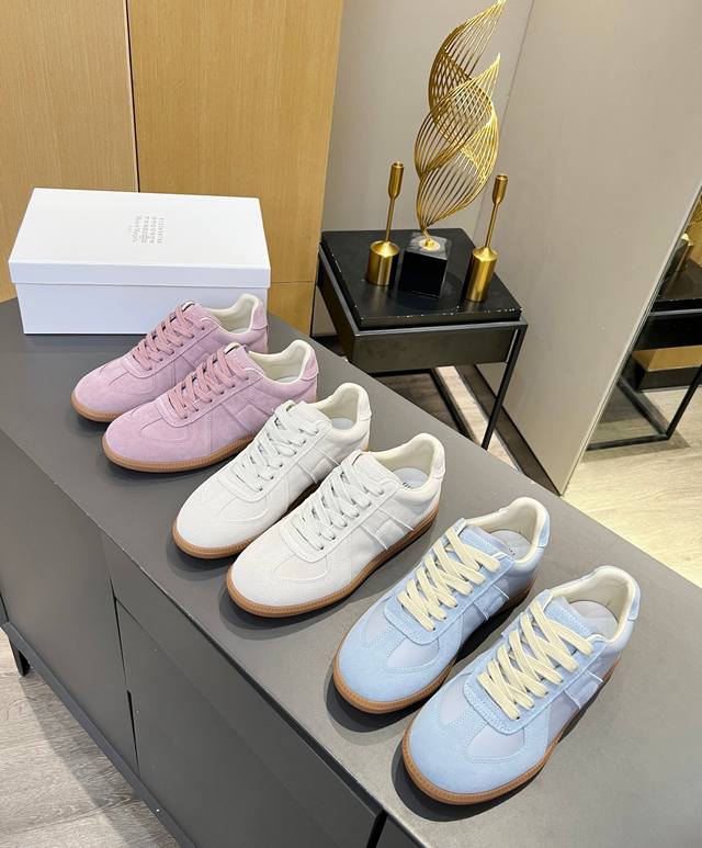 Just hearing the retro style immediately brings to mind the classic M*Arginal. Retro and fashionable, clean and refreshing color schemes for spring, summer, autumn and winter, comfortable, cool and casual style design, very Margiela style, pressure-free to wear, full of pioneering elements, original packaging, a light luxury trendy style, combining multiple elements designed by Margiela designers. This German training shoe continues the classic T-shaped genuine leather splicing, after multiple careful improvements by the design team, just to let you experience the most original military flavor