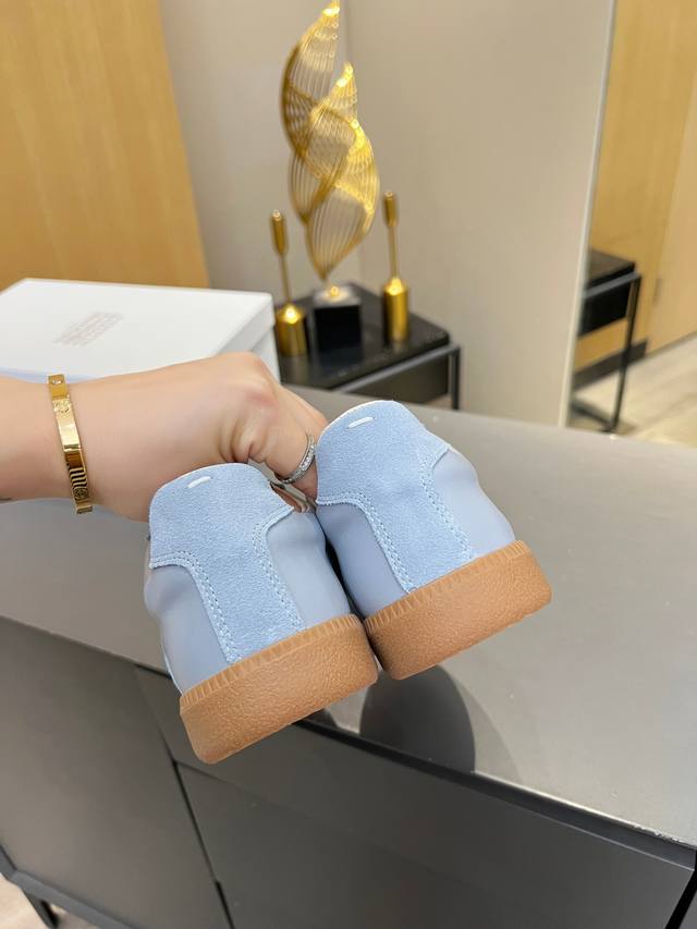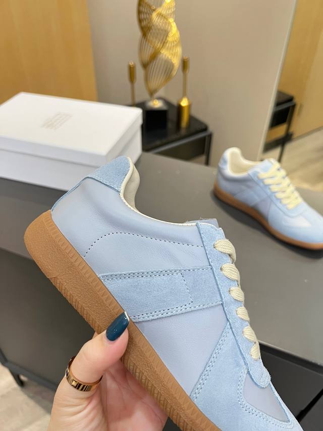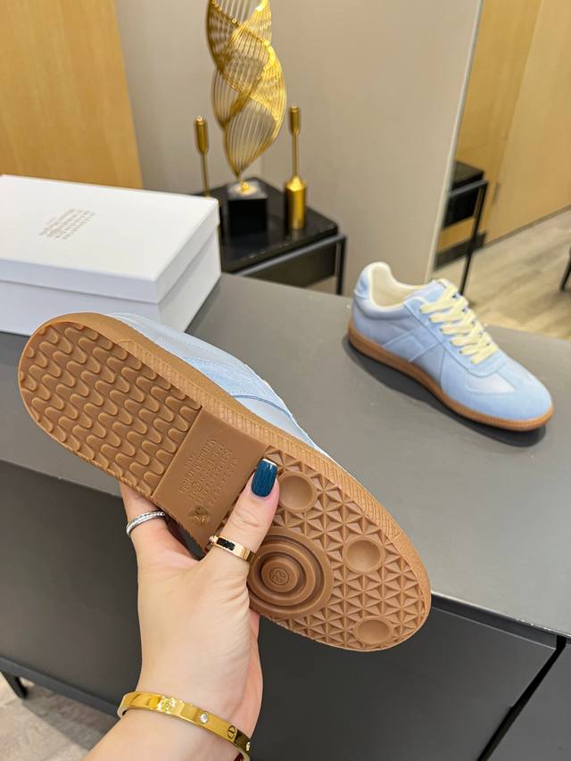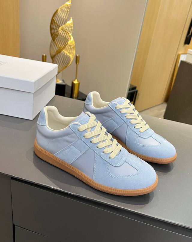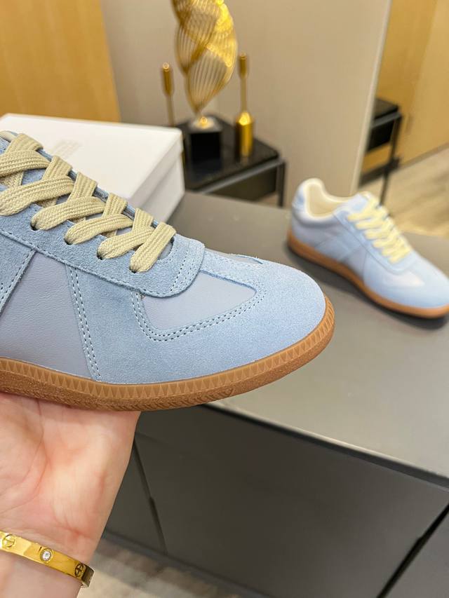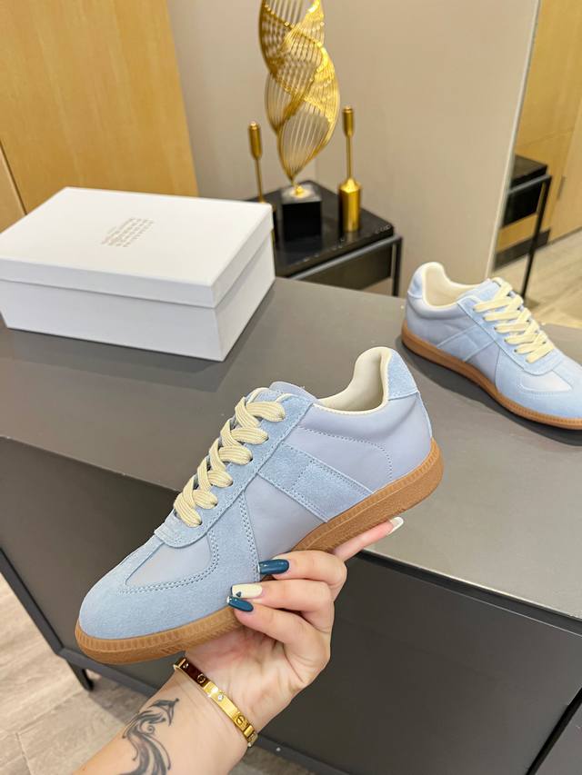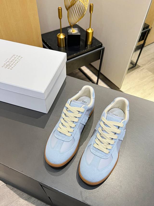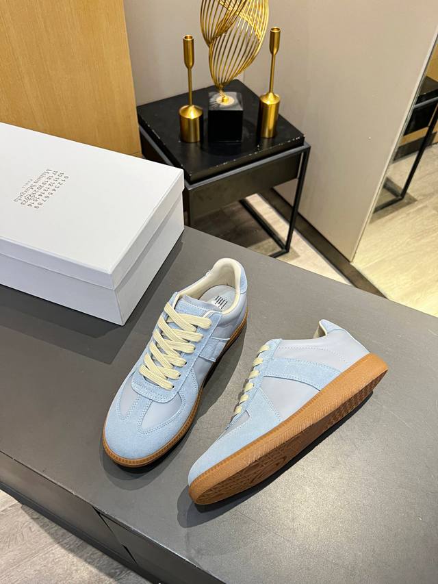 Just hearing the retro style immediately brings to mind the classic M*Arginal. Retro and fashionable, clean and refreshing color schemes for spring, summer, autumn and winter, comfortable, cool and casual style design, very Margiela style, pressure-free to wear, full of pioneering elements, original packaging, a light luxury trendy style, combining multiple elements designed by Margiela designers. This German training shoe continues the classic T-shaped genuine leather splicing, after multiple careful improvements by the design team, just to let you experience the most original military flavor