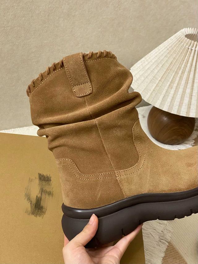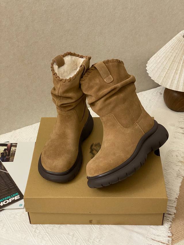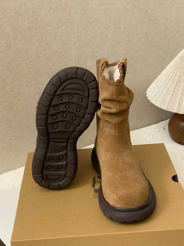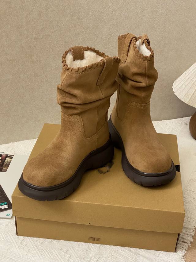 Exclusive Upgrade Highlights: DDD Exclusive pleated design on the boot shaft, making legs appear straighter and slimmer. DDD Thinner in the front and thicker in the back, providing a smooth, slip-resistant, and durable feel. DDD Insole made of sheepskin, with wool up to 1.5cm long. DDD Upper covered in top-grain cowhide, providing warmth and preventing stuffiness. DDD Sizes: 35-40. DDD Factory Price: DDD