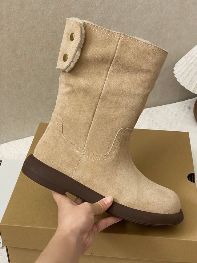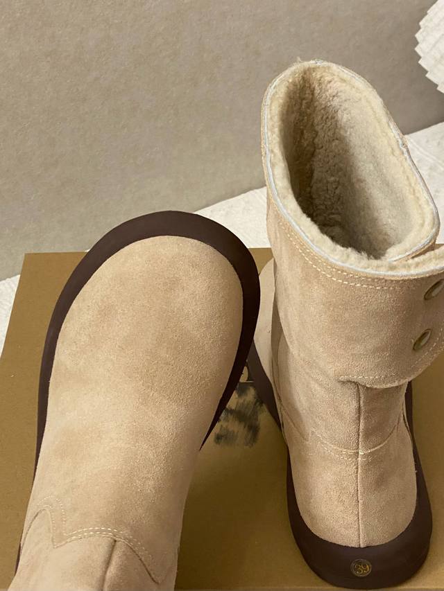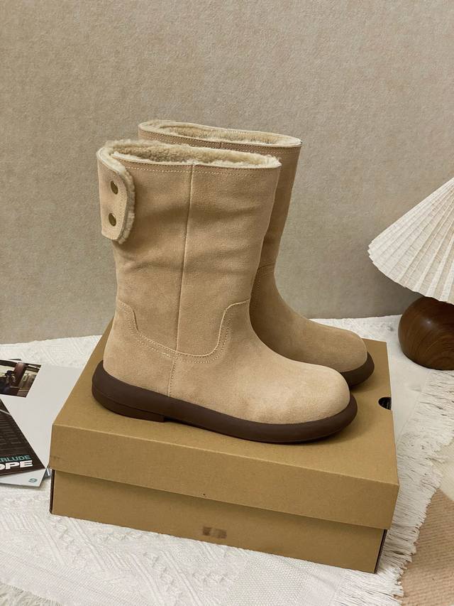 Exquisite Craftsmanship: High-top boot style with a 3D patchwork upper; delicate metal buckle at the heel adds a touch of style; cowhide upper meets sheepskin lining; 1.5cm thick wool insulation system; lightweight, non-slip outsole for a zero-weight experience; two styles in one, unlocking double the surprises; high-top for warmth and style; fold down for a relaxed ankle boot look; switch between two styles at will, get two pairs for the price of one.