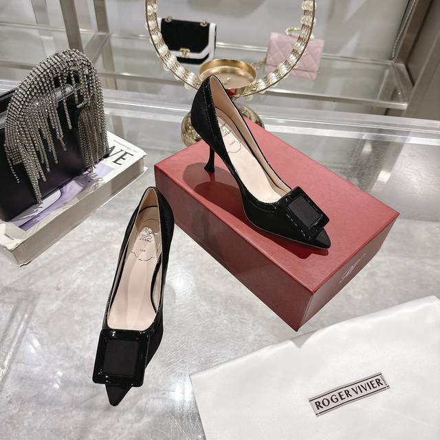 25 new Rv painted square buckle single shoes high heels