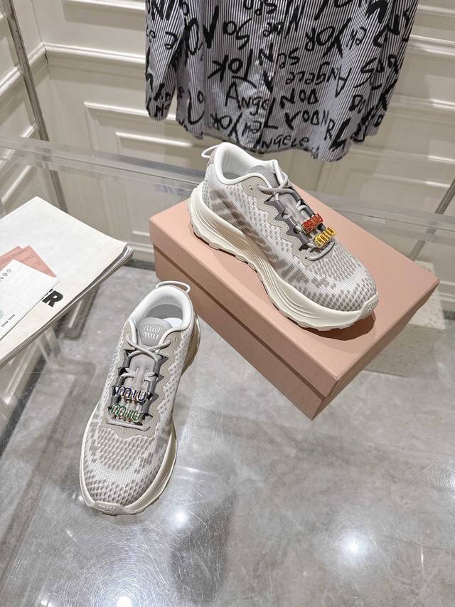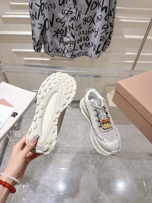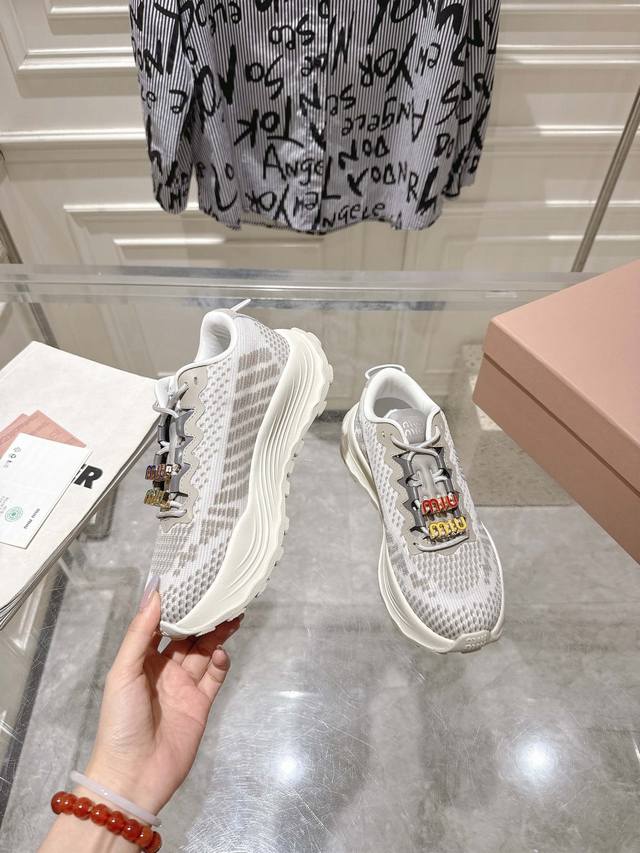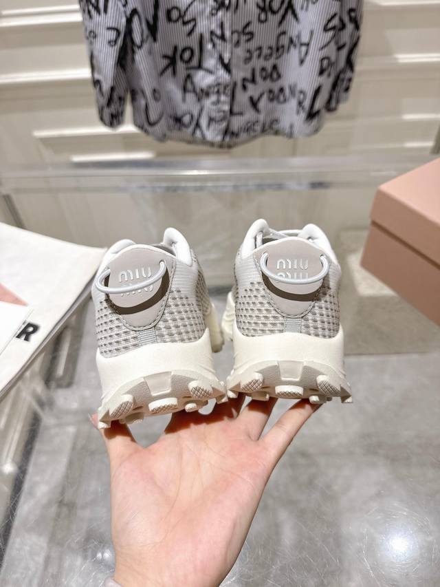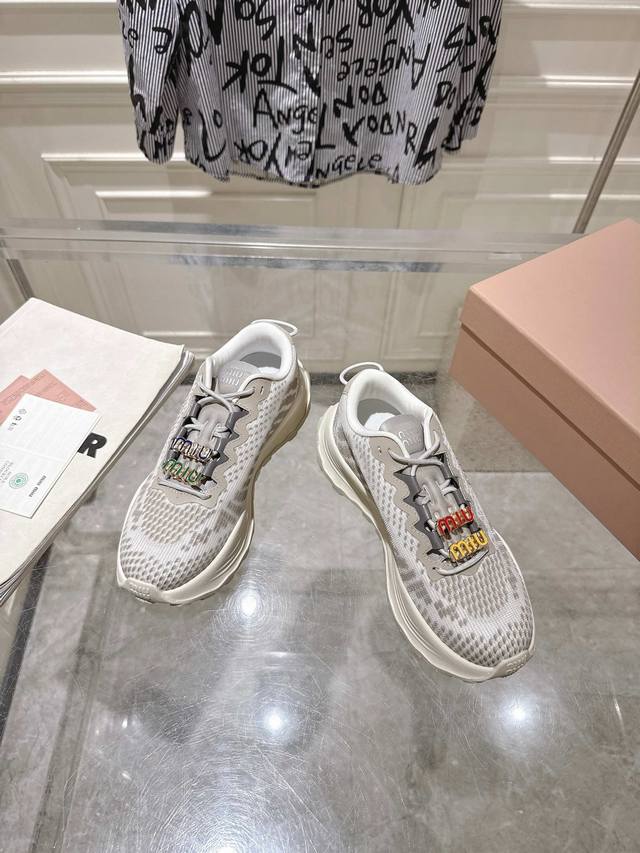 Miumiu's latest retro thick-soled high-heeled flyknit casual sneakers