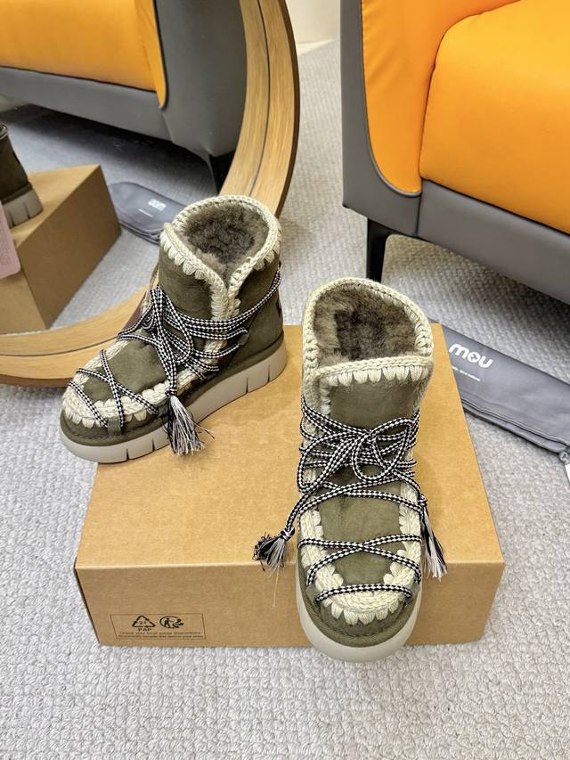 Mou Retro Barn-style fur boots for a fall/winter vibe. Mou Eskimo sheepskin snow boots.