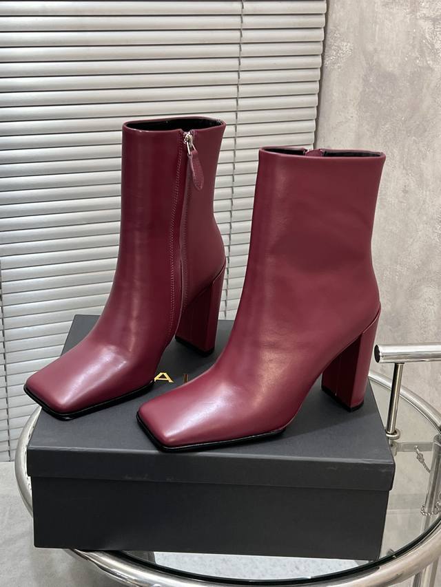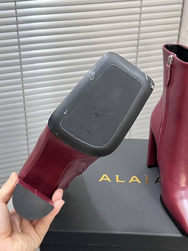 Factory Direct Alaia New Square Toe Chunky Heel Ankle Boots! Full of sophistication, perfect for various trendy outfits, easily capturing a fashionable style. Upper: Imported cowhide. Lining: Imported sheepskin. Outsole: Original sole. Heel height: 10.5cm. Sizes: 35-39, 40, 41, 42 (custom sizes available).