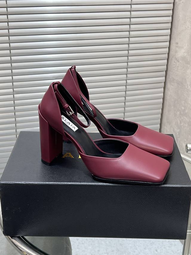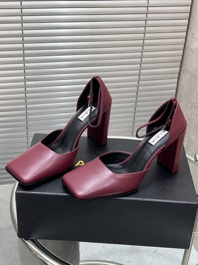 Factory Direct Alaia New Square-Toe Chunky Heel High Heels! Full of sophisticati