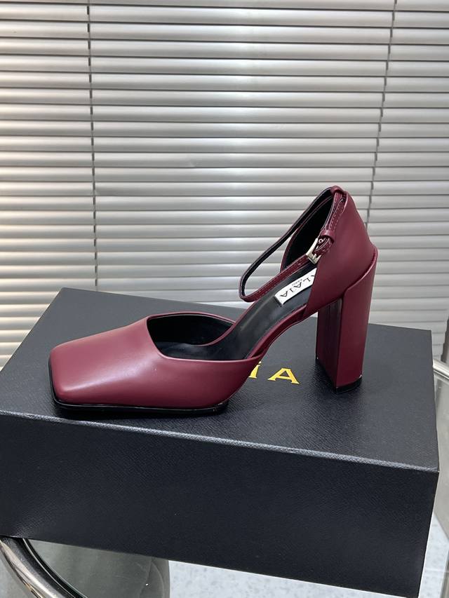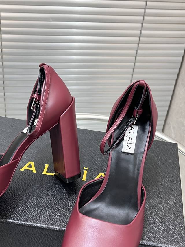 Factory Direct Alaia New Square-Toe Chunky Heel High Heels! Full of sophistication, perfect for various fashionable outfits, easily capturing a trendy style. Upper: Imported cowhide. Lining: Imported sheepskin. Outsole: Original sole. Heel height: 10.5cm. Sizes: 35-39, 40, 41, 42 (custom sizes available).