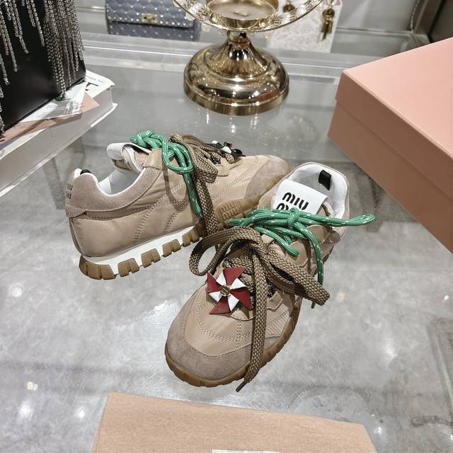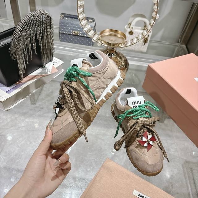 Factory direct buckle 10 Miu Miu 25 Biscuit Shoes, Forrest Gump Shoes, Casual Shoes, Sports Shoes, Spring/Summer New Arrival, Recently Popular, Avant-garde and Bold Design. The Miu style is incorporated into the simple lines of this thick-soled canvas sports shoe. Unique logos adorn the tongue and back, adding a retro touch. The thick-soled design is bold, innovative, and avant-garde. Comfortable and breathable, the color is also very versatile. Sizes 34-41. 34 41 Custom Made.