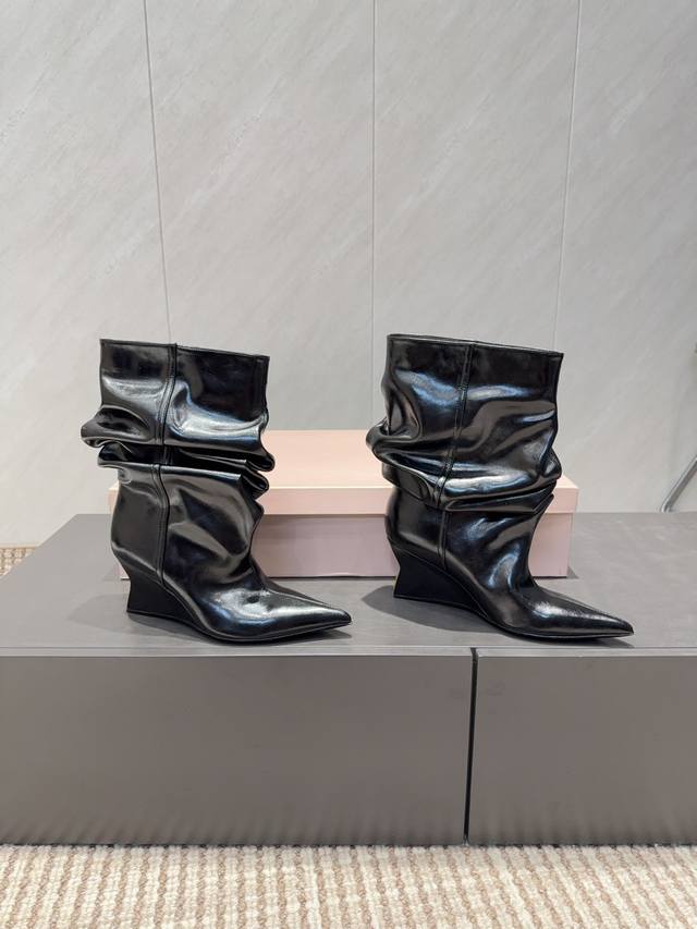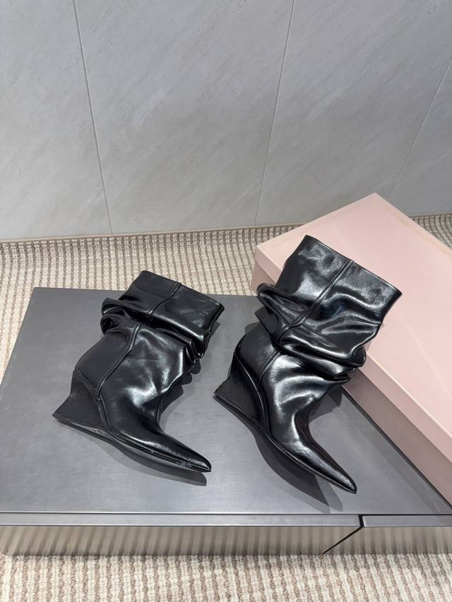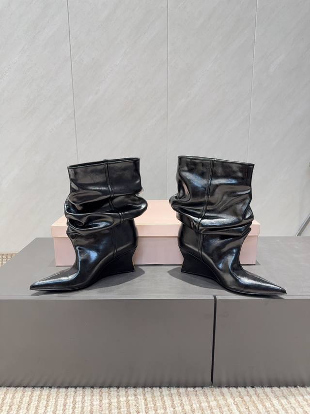 Factory Direct: Exclusive Top-Tier Version DDD Balmaln 2025 Autumn Latest Fashion Hot-Selling Boots Series DDD Pointed Toe Wrinkled Wedge Heel Ankle Boots DDD Original 1:1 Replica, All Positions are Perfect, Popular Online Item, Top Casual Vacation Series, Famous Influencers and Celebrities Alike Seek This Style, Often Sold Out and Hard to Find DDD An Indispensable Item for Summer, Retro Boots, Extremely Attractive and Stylish Sporty Look, Showcasing Your Elegance, Lightness, and Slimming Style DDD Material: Original Custom Cowhide DDD Lining: Original Custom Cowhide DDD Insole: Original Custom Cowhide DDD Outsole: Original Custom Genuine Leather Combination Sole DDD Heel Height: 7.5cm DDD Packaging: Original Custom Full Set Packaging DDD Sizes: 35-39, 40, 41, 42. Customized, No Returns or Exchanges DDD Colors: Updated Simultaneously with Official Website DDD