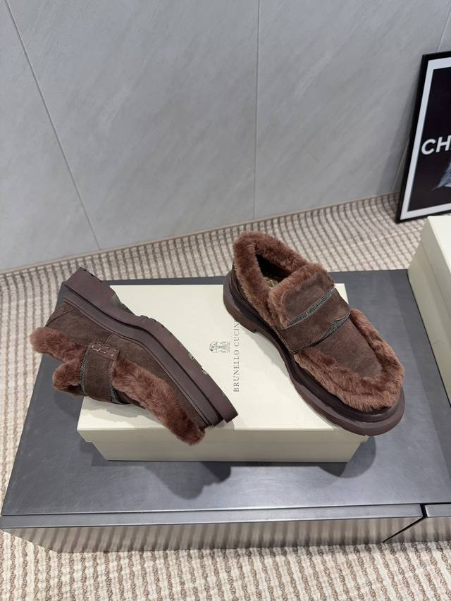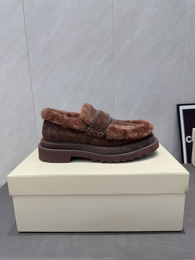 Factory Direct: Exclusive Top-Tier Version DDD Brunellocucinelli 2025 VS Autumn/Winter Mauritius Loafers DDD Brunellocucinelli Original Custom-Made. Lightweight and comfortable to wear, even for commuting, it's perfectly appropriate. Although the shoes combine different materials and colors, there's no sense of disharmony or exaggeration; instead, they create a visually pleasing effect. DDD Material: Original Custom-Made Suede with Fur Trim DDD Lining: Original Custom-Made Sheepskin DDD Insole: Original Custom-Made Sheepskin DDD Outsole: Original Molded Foam-Formed Sole DDD Sizes: 35-39, 40, 41. Custom-made, no returns or exchanges DDD Packaging: Original Full Packaging DDD Colors Updated Simultaneously with Official Website DDD