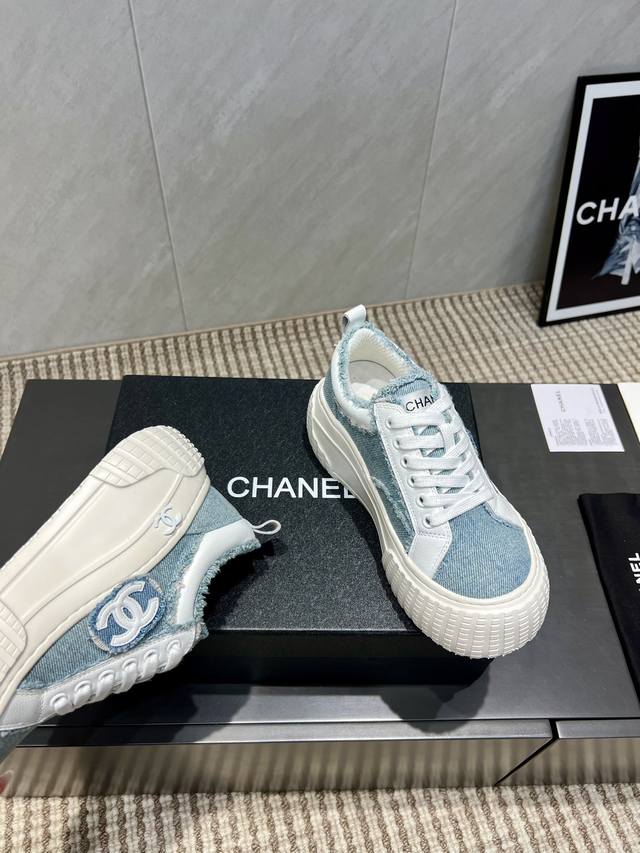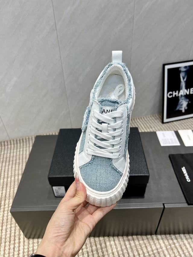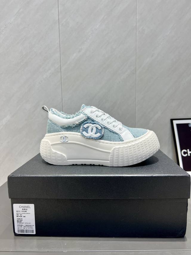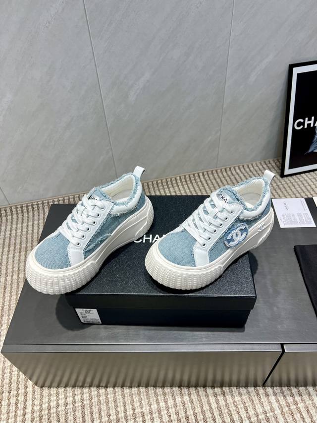 Factory Direct: Exclusive Top-Tier Version DDD Chanel 2025 VS Early Autumn Hot Casual Series DDD Platform Casual Shoes DDD Fairy Style, the latest color blocking is absolutely stunning, irresistible, the latest biscuit shoes, currently super popular colorful casual shoes, wildly recommended by internet celebrities and Xiaohongshu, cute and adorable with a touch of retro! Unique design, very recognizable, slimming and leg-lengthening, definitely a top performer, very comfortable to wear, high-value and comfortable, height-increasing, a must-recommend, this year's main series, minimalist style DDD Material: Original custom cowhide washed denim DDD Lining: Original custom breathable mesh DDD Insole: Original custom sheepskin DDD Outsole: Original molded foam-molded sole DDD Sizes: 35-39 40.41. Customized, no returns or exchanges DDD Packaging: Original full set of packaging DDD Color: Updated simultaneously with the official website DDD