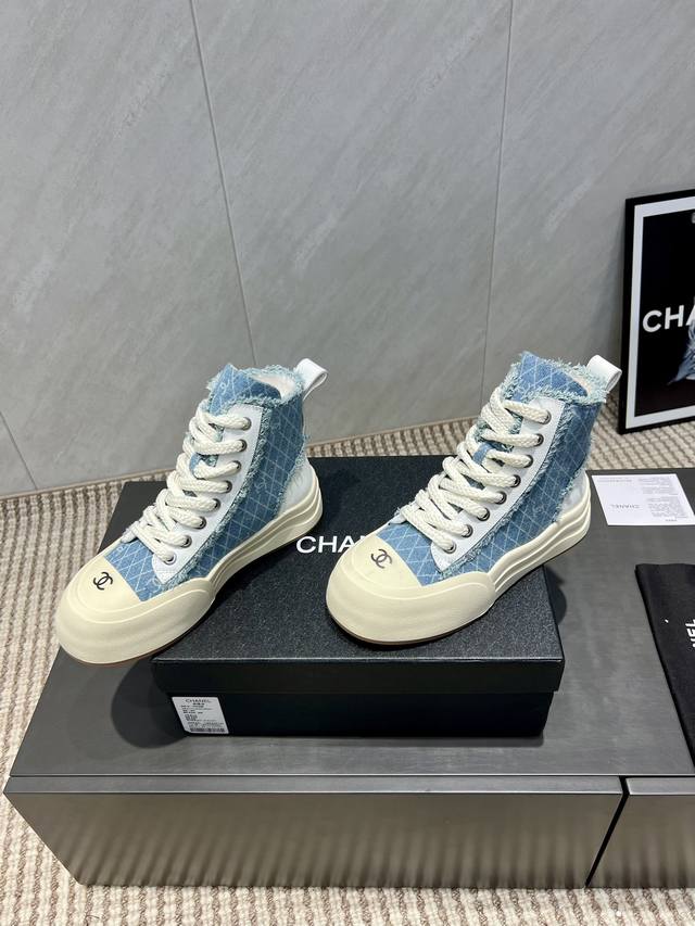 Factory Direct: Exclusive Top-Tier Version DDD Chanel 2025 VS Early Autumn Hot Casual Ankle Boots Series DDD Round Toe Thick Sole Casual Ankle Boots DDD Fairy Style, the latest color blocking is absolutely stunning, irresistible, the latest biscuit shoes, currently super popular colorful casual shoes, wildly recommended by internet celebrities and Xiaohongshu, cute and adorable design with a touch of retro! Unique design, very recognizable, slimming and leg-lengthening, definitely a top performer, very comfortable to wear, high-value and comfortable, height-increasing, a must-recommend, this year's main series, minimalist style DDD Material: Original custom cowhide washed denim DDD Lining: Original custom sheepskin DDD Insole: Original custom sheepskin DDD Outsole: Original molded foam-molded sole DDD Sizes: 35-39 40.41. Customized, no returns or exchanges DDD Packaging: Original full set of packaging DDD Color: Updated simultaneously with the official website DDD