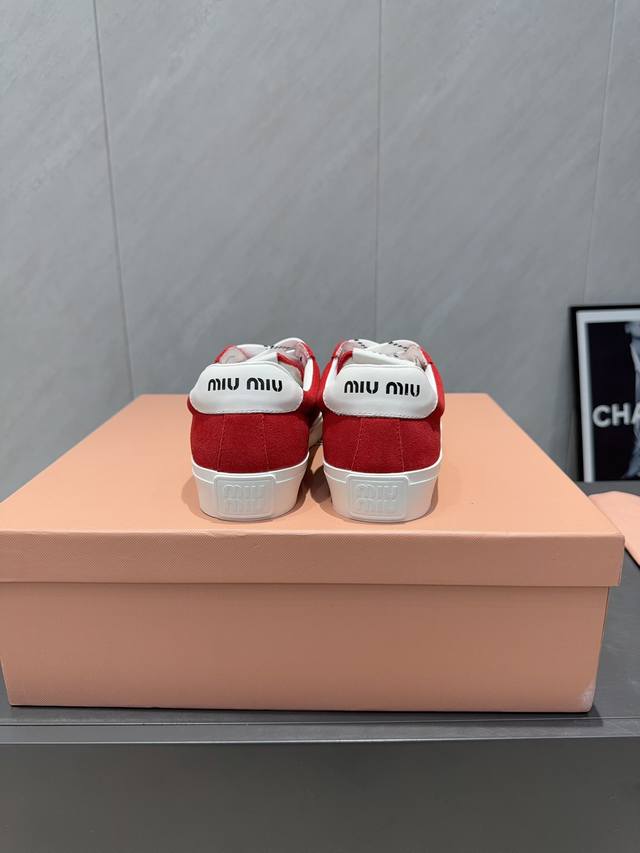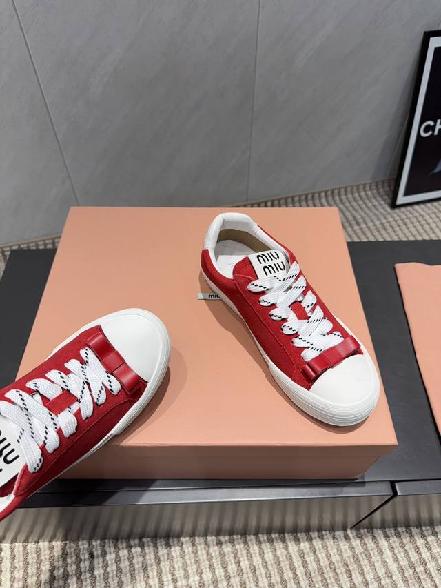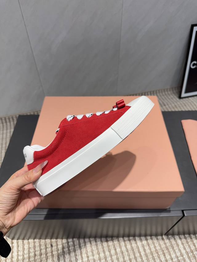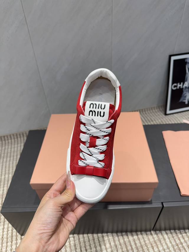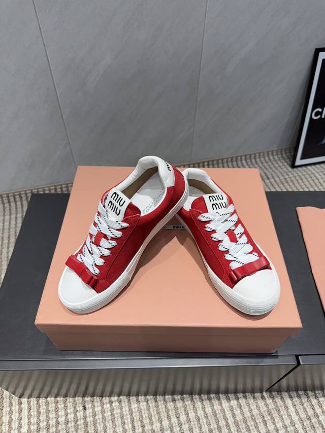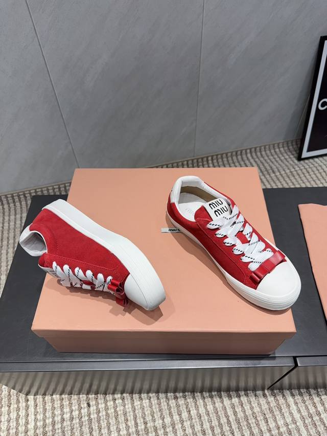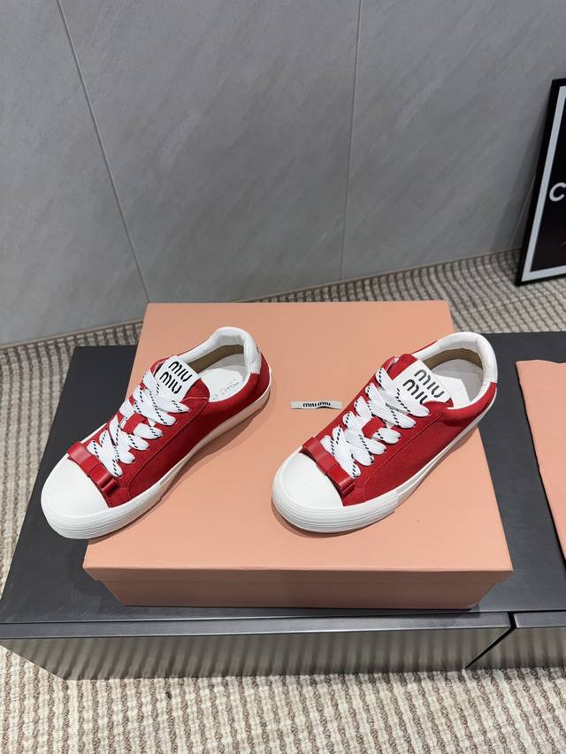Factory Direct: Exclusive Top-Tier Version DDD Miu Miu 2025 VS Latest Hot-Selling Casual Shoes Series DDD Color Block Bow Casual Shoes DDD Miu Miu's latest hot-selling avant-garde and bold design, Miu Miu style is integrated into the simple lines of this platform canvas sneaker DDD Unique logos adorn the tongue and back, embellishing the retro design and adding iconic elements! Platform design defines avant-garde modern style DDD Material: Original custom cowhide suede color blocking process DDD Lining: Original custom sheepskin DDD Insole: Original custom sheepskin DDD Outsole: Original molded non-slip sole DDD Packaging: Original full set of packaging DDD Sizes: 35-39 40.41. Custom DDD Colors: Updated synchronously with the official website DDD