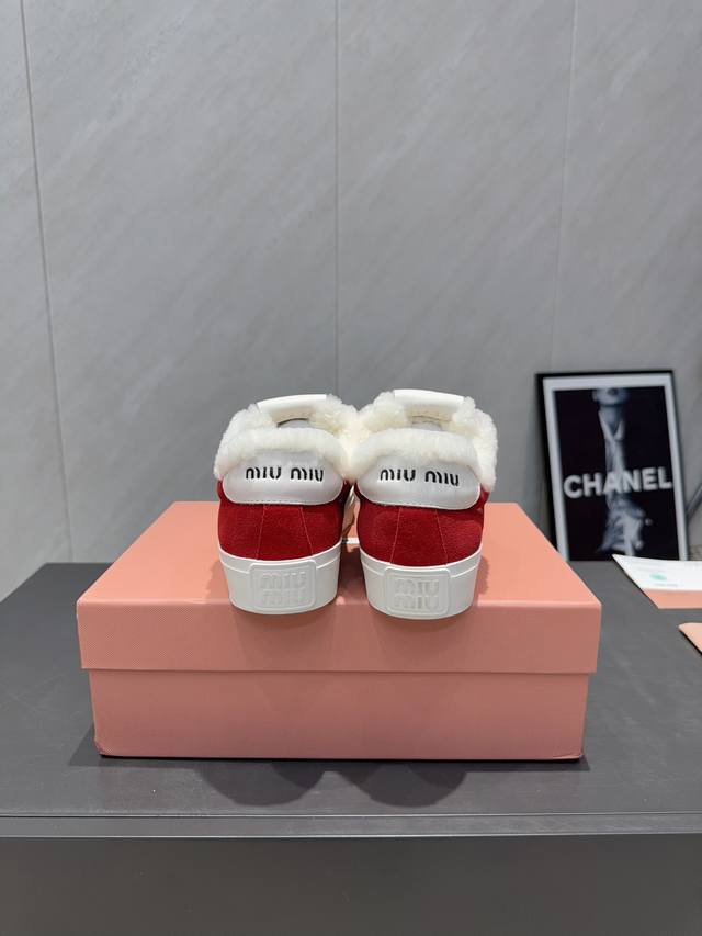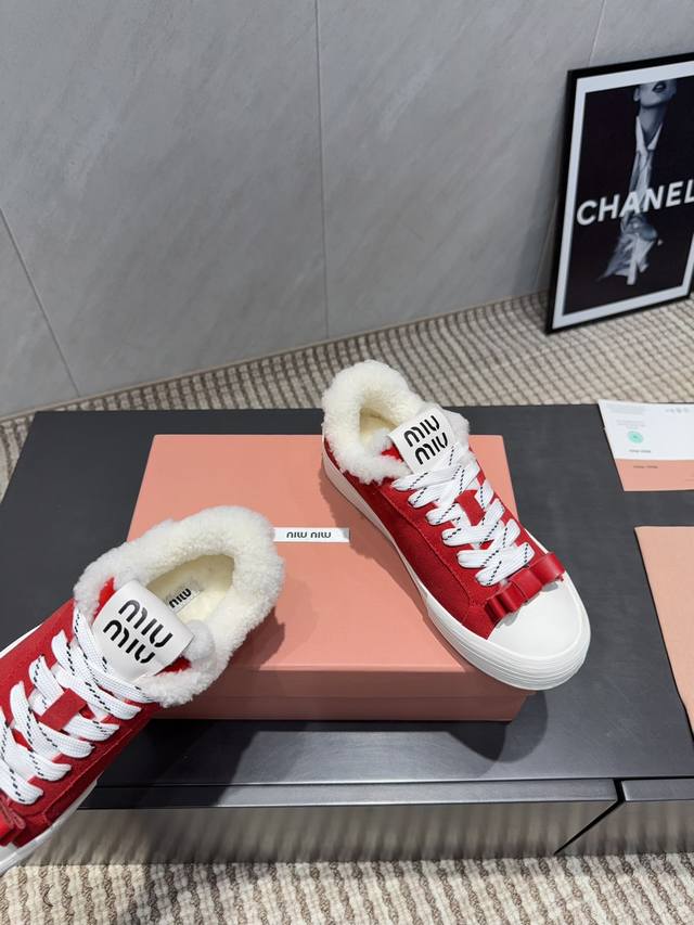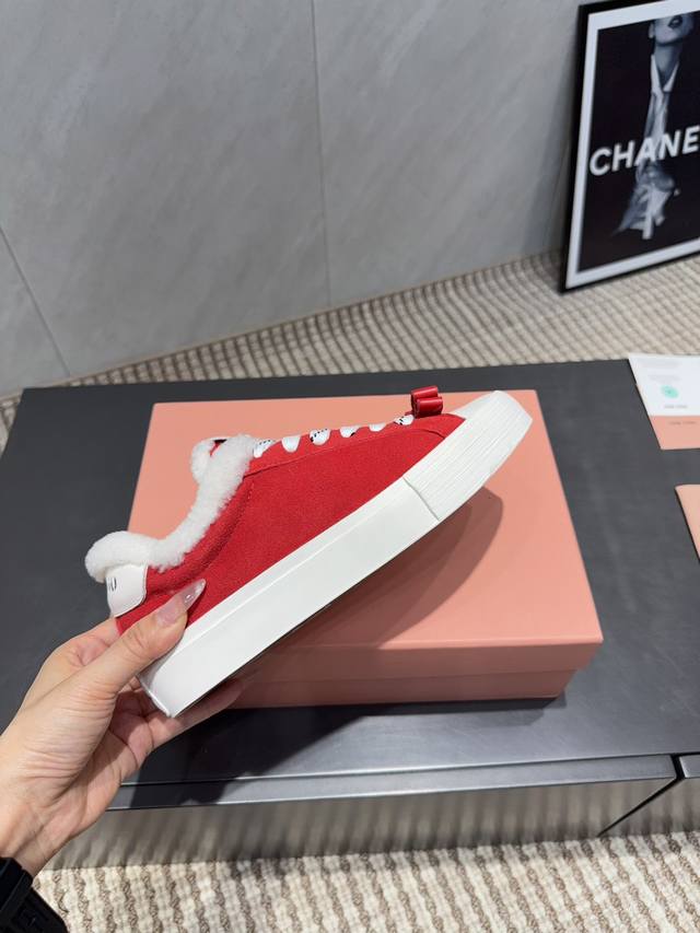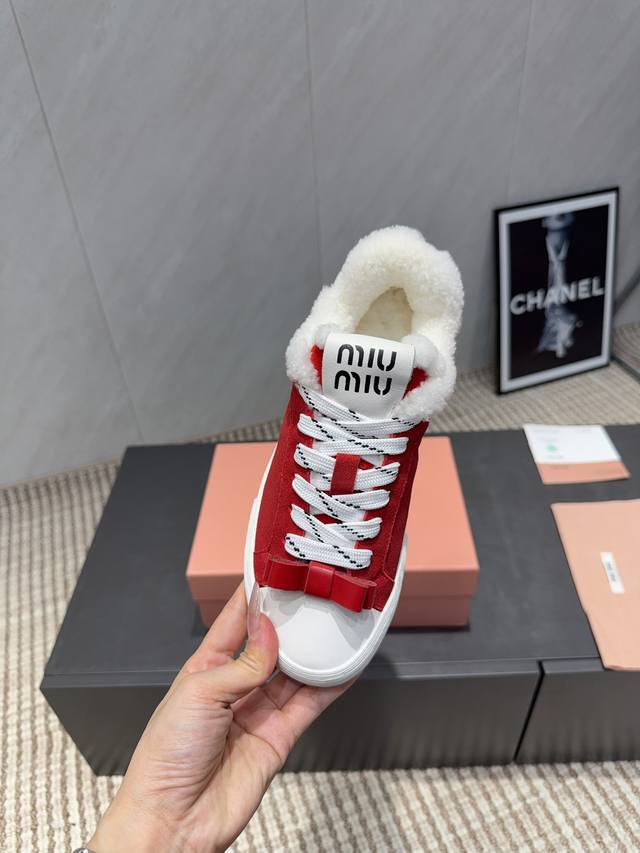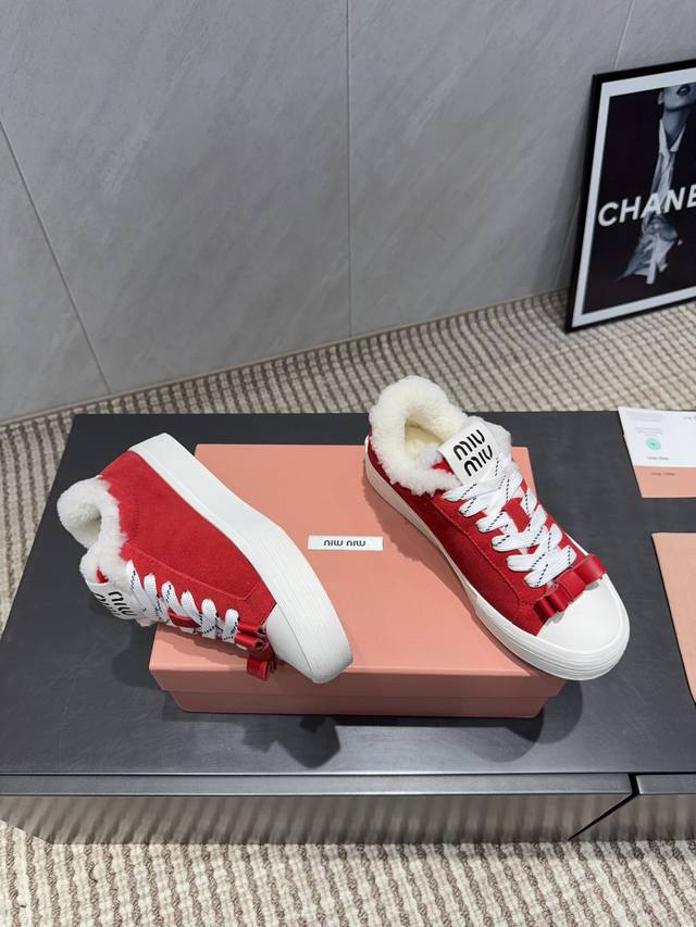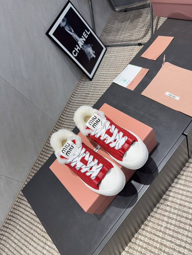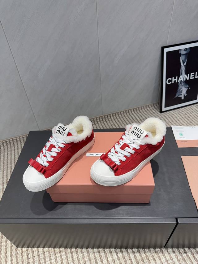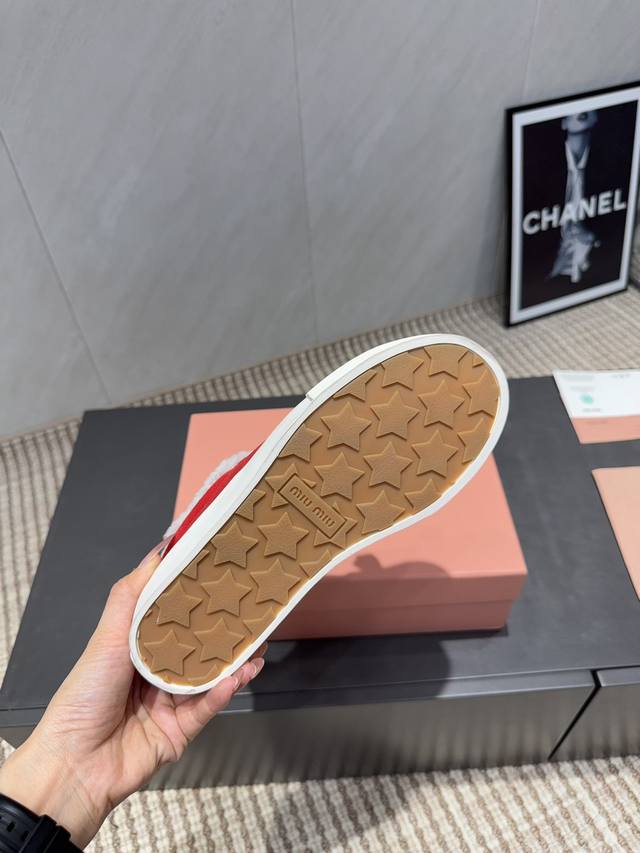 Factory Direct: Exclusive Top-Tier Version Miu Miu 2025 VS Latest Hot-Selling Casual Shoes Series Thick-Soled Fleece-Lined Casual Shoes Miu Miu's latest hot-selling style features a bold and avant-garde design. The Miu Miu style is integrated into the simple lines of this thick-soled canvas sneaker. Unique logos adorn the tongue and back, adding a retro touch and signature element! The thick-soled design defines a modern and avant-garde style. Material: Original custom cowhide and suede color-blocking process. Lining: Original custom wool. Insole: Original custom wool. Outsole: Original molded anti-slip sole. Packaging: Original full packaging. Sizes: 35-39, 40, 41. Customized. Colors: Updated simultaneously with the official website.