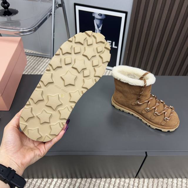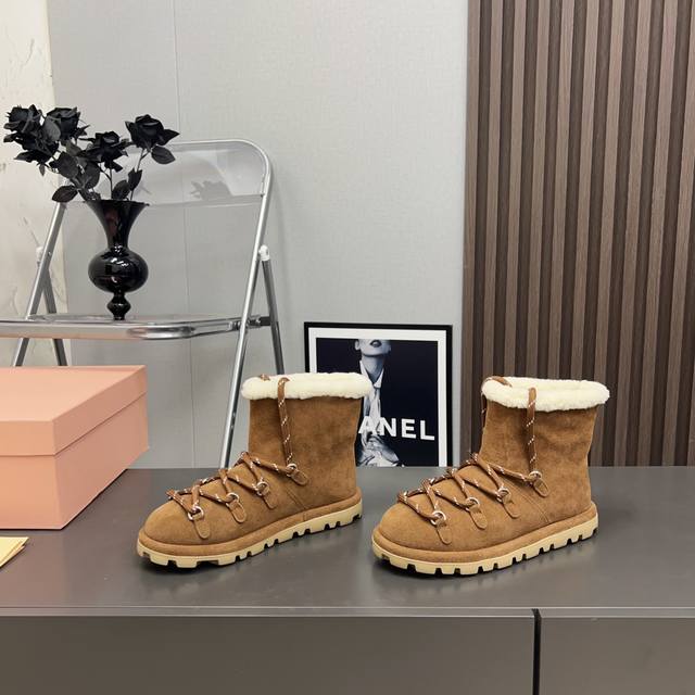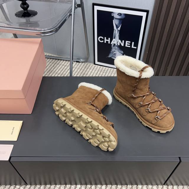 Factory Direct: Exclusive Top-Tier Version DDD Miumiu 2025 VS Fall/Winter Latest Runway Hot-Selling Snow Boots Series DDD Round Toe Lace-up Thick-Soled Snow Boots DDD Top-Tier Version Miumi Fall/Winter Limited Runway Snow Boots! DDD The most worthwhile boots to buy this year, bar none! Wearing the same style as Yi Mengling, many internet celebrities and stars. Miumi's Fall/Winter collection is truly cool and sexy this year. This limited edition Fall/Winter collection is very hard to find in stores. It looks stiff, but it's actually very soft and incredibly comfortable! Superb feel! The wide boot shaft provides a relaxed feel regardless of leg thickness and makes legs look straight!! Full of punk style! DDD Upper: Original custom suede DDD Lining: Original custom wool DDD Insole: Original custom wool DDD Outsole: Original molded foam outsole DDD Sole thickness: 2cm DDD Sizes: 35-39 40. Custom orders are non-refundable and non-exchangeable DDD Packaging: Original full packaging DDD Colors: Updated synchronously with the official website DDD