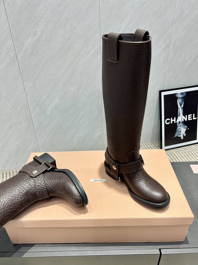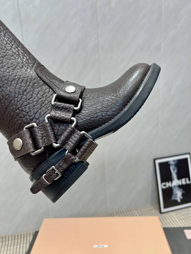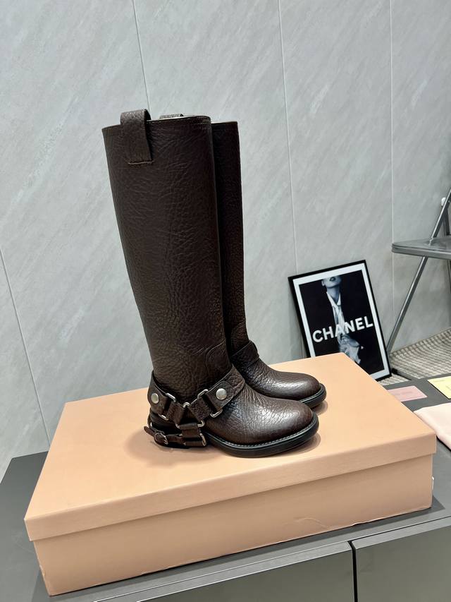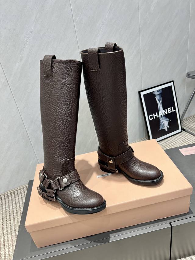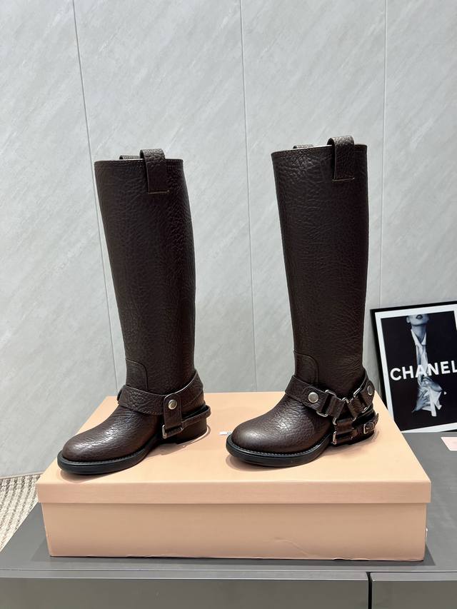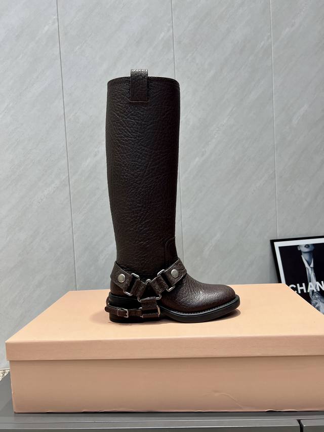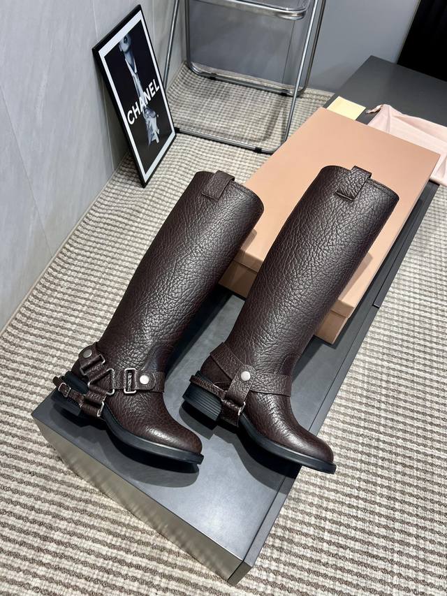 Factory Direct: Exclusive Top-Tier Version Miumiu 2025 VS Fall/Winter Latest Runway Hot-Selling Boots Series DDD Retro Round Toe Slip-On High Boots DDD Top-Tier Version Miumi Fall/Winter Limited Runway Long Boots! DDD The most worthwhile boots to buy this year, bar none! Wearing the same style as Yi Mengling, many internet celebrities and stars. Miumi this fall/winter is indeed very cool and sexy. This fall/winter limited edition is very hard to buy in stores. It looks stiff, but it's actually very soft and incredibly comfortable! Super comfortable! The wide boot shaft provides a relaxed feel regardless of leg thickness and makes legs look straight!! Full of punk style! DDD Upper: Original custom cowhide DDD Lining: Original custom cowhide DDD Insole: Original custom cowhide DDD Outsole: Original mold combination outsole DDD Heel height: 5cm DDD Sizes: 35-39 40. Custom orders are non-refundable and non-exchangeable DDD Packaging: Original full packaging DDD Colors: Updated synchronously with the official website DDD